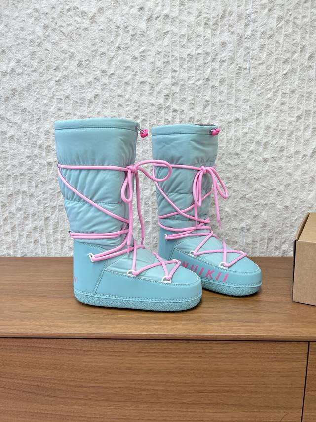 FFF G060 Inuikii 小众潮牌 25Ss秋冬新款 绑带羽绒靴 滑雪鞋 雪地靴 DDD 当瑞士阿尔卑斯的冰雪与法式摩登美学相撞 DDD 这款雪地靴便以全能实力惊艳冬日 DDD 既藏着专业滑雪装备的硬核性能 DDD 又缀满高阶时尚的设计巧思 DDD 细腻面料随光影流转尽显质感 DDD 搭配柔软反绒皮拼接设计 DDD 肌理碰撞间勾勒出复古又灵动的轮廓 DDD 自带不撞款的小众高级感。 DDD 鞋身标志性粗织绑带贯穿鞋筒 DDD 可自由调节松紧度也提供稳固支撑 DDD 又以利落线条修饰腿部比例 DDD