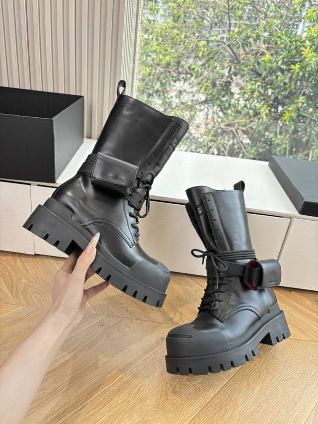 G068Dymonlatry 所见即所得新品双工装靴 潮到犯规 大厚底自带拉高Buff 绑带+小口袋设计超有个性 穿上直接Slay全场 酷Girl闭眼冲~ 鞋面