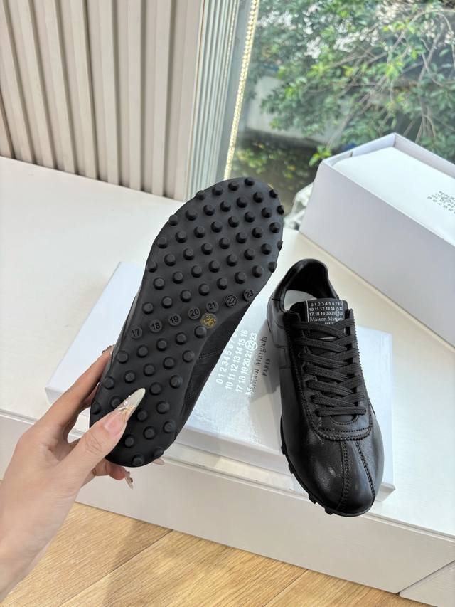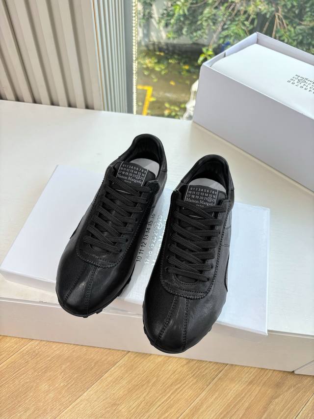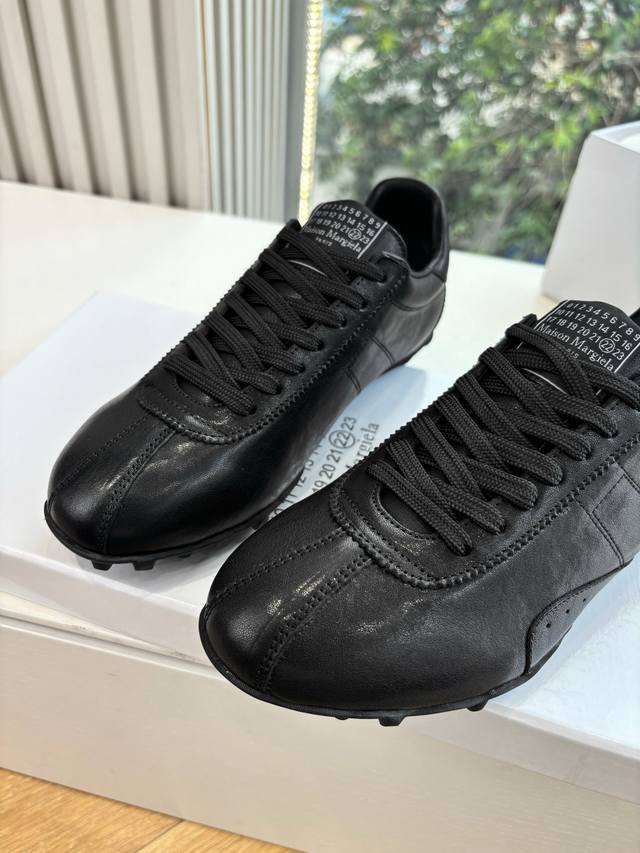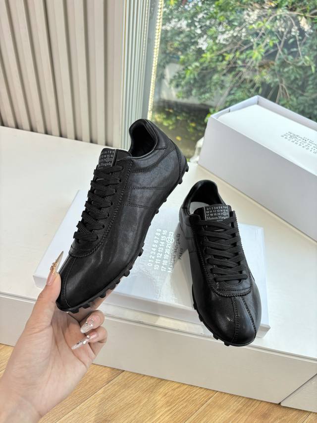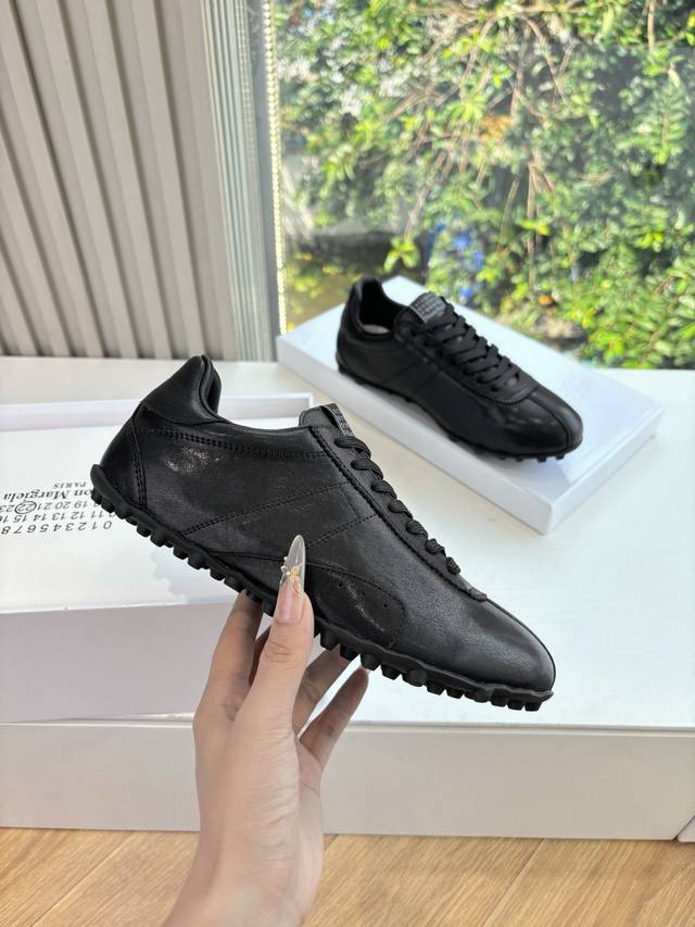 G077Maison Margiela 马吉拉2025秋冬系列情侣款阿甘鞋德训鞋 新款Sprinters运动鞋轮廓采用做旧植柔牛皮制成,灵感来源于复古跑鞋。通过