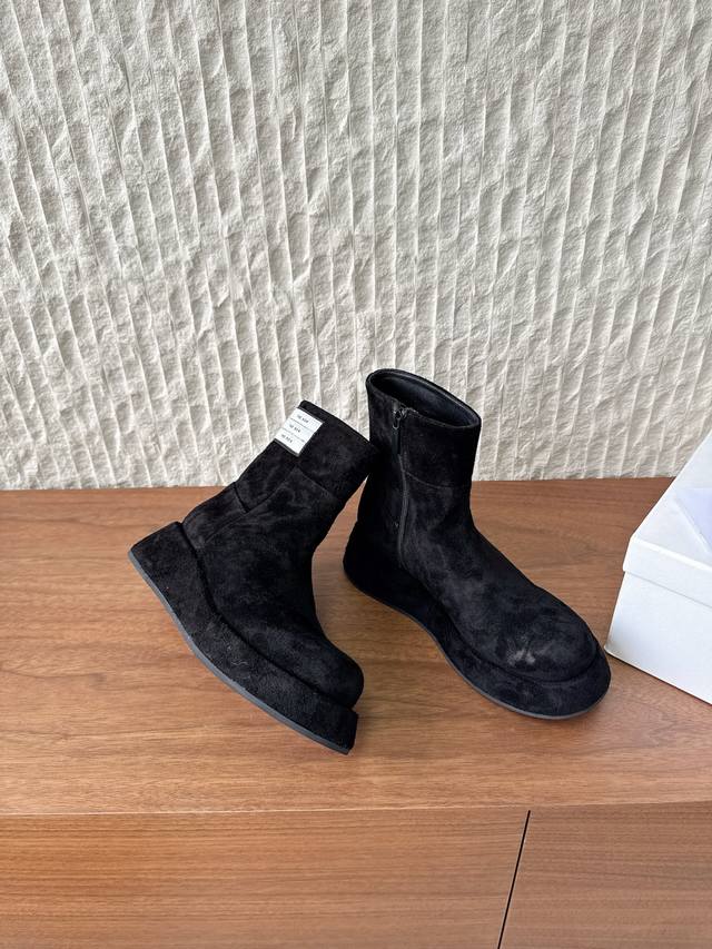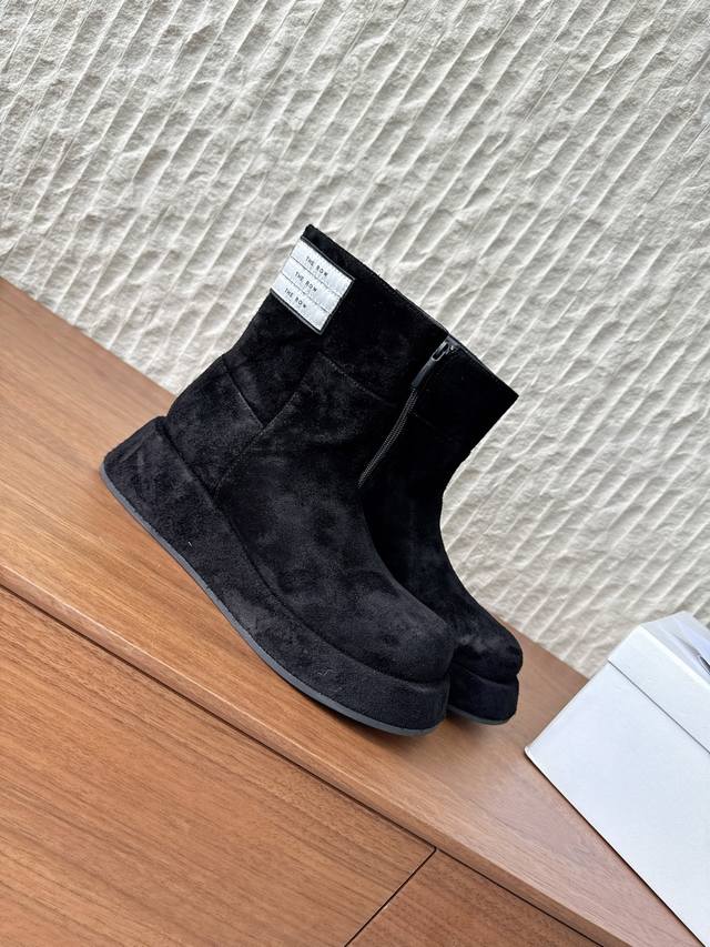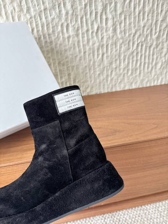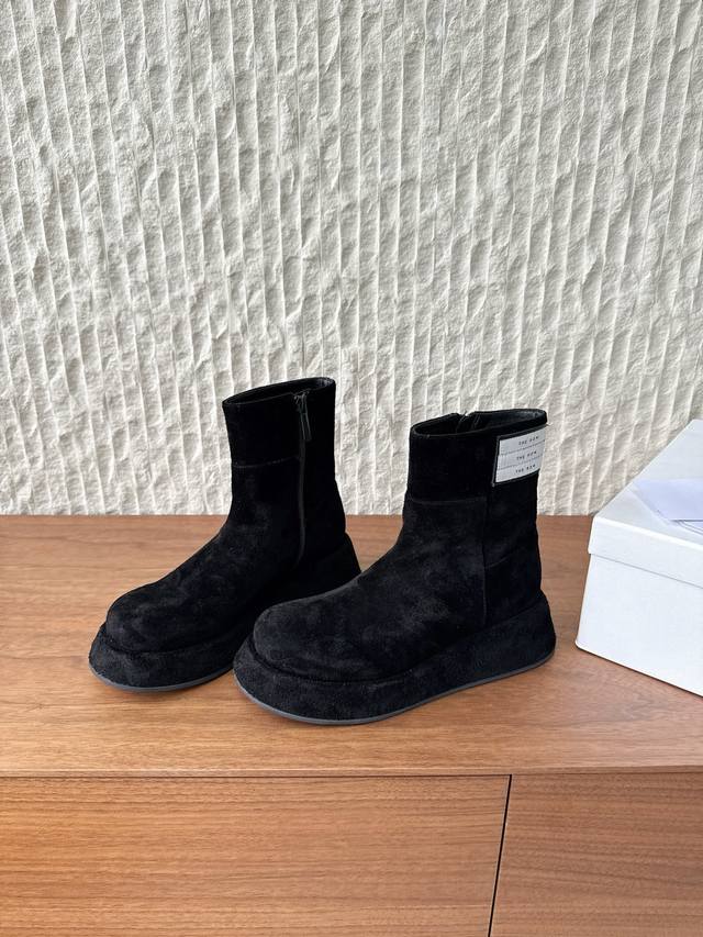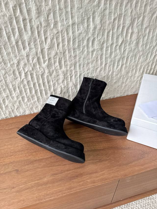 G129 The Row 小众潮牌 25Ss秋冬新款 复古 圆头 厚底 切尔西 短靴 上脚真的是史上我穿过最最舒服的款式太柔软啦! 磨脚星人一定要收了它 有一丢高级又简约的感觉其实除了好看以外它的舒适度真的是好穿到舍不得脱下来啦! 搭配牛仔裤 西装裤 半身裙都毫无违和感 面料:采用原版进口麂皮 内里垫脚:羊皮 鞋底:原版定制橡胶大底 Size:35-39 40定制不退不换