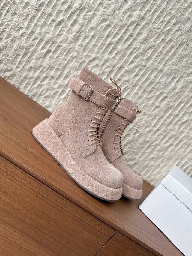 / G129 The Row 小众潮牌 25Ss秋冬新款 系带 圆头 厚底 马丁靴 短靴 上脚真的是史上我穿过最最舒服的款式太柔软啦! 磨脚星人一定要收了它 有一丢