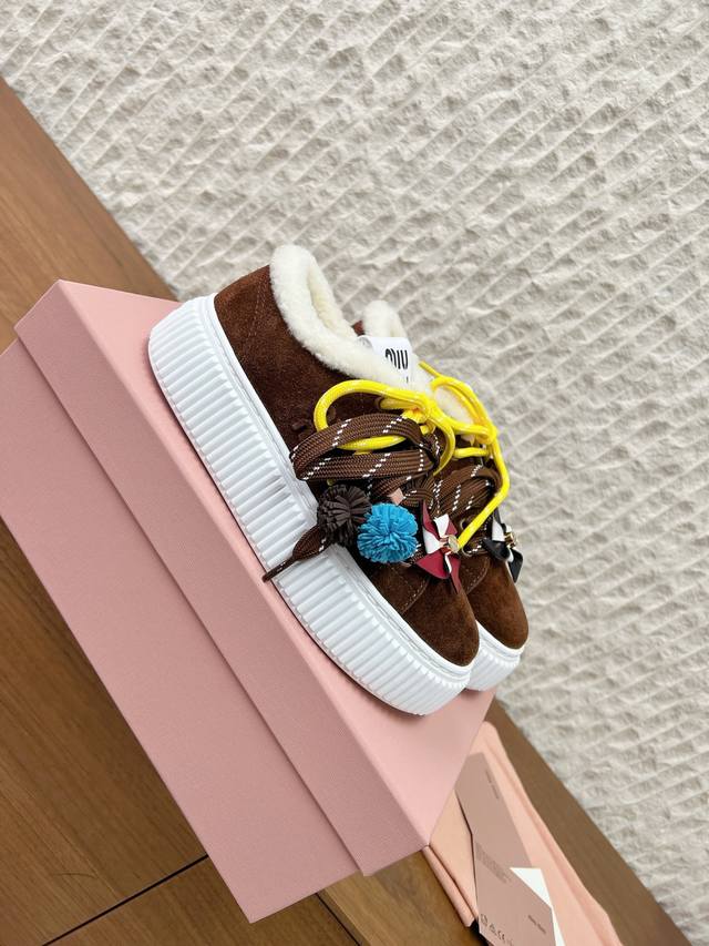 G169 Miumiu 缪缪家 25Ss 秋冬新款 3D刺绣 厚底 休闲鞋 小白鞋 DDD 顶级原版面料质感满满,搭配经典3D立体字母刺绣,刺绣Logog立体饱满,瞬间点亮整体造型,辨识度Up!Ip超轻发泡大底!轻盈高弹.无论是日常出街还是度假旅行,它都能轻松Hold住场面。 DDD 穿上它,你就是街头最靓的崽! DDD 鞋面:进口高丝光牛反绒 DDD 内里:羊羔毛内里 DDD 大底:Ip发泡大底 DDD Size:35-40 40.定做不退换 DDD