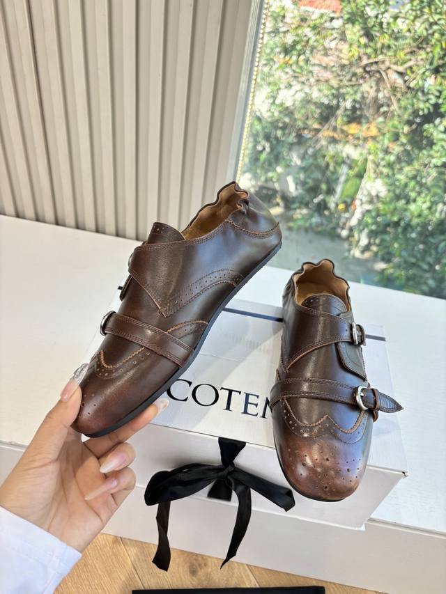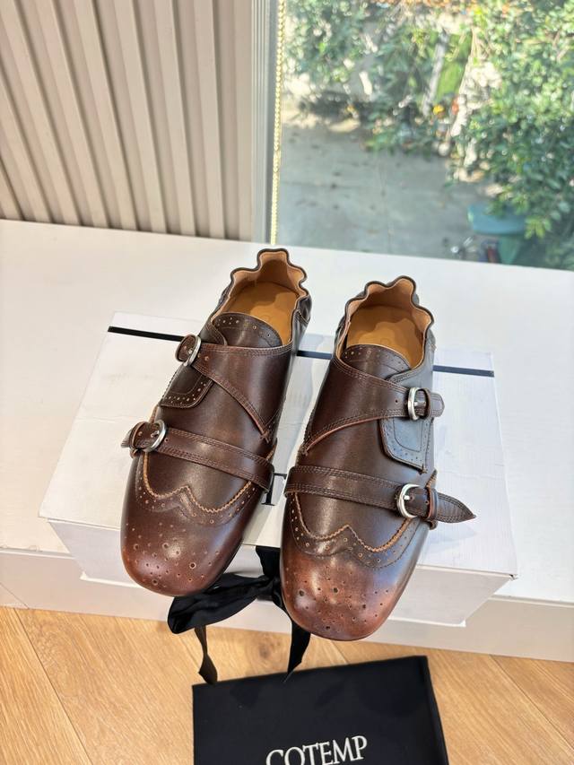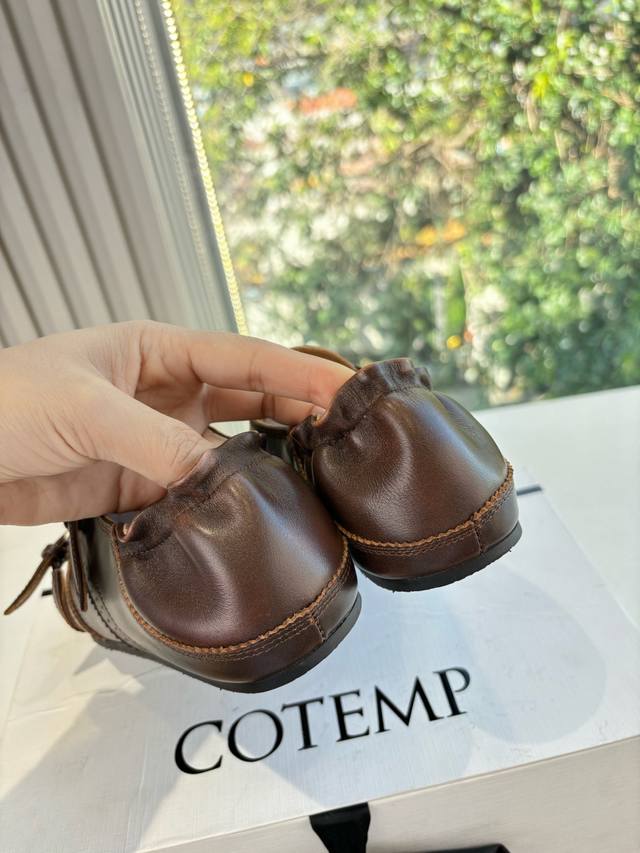 G21325Cotemp乐福鞋延续Cotemp 设计开发的Regalo 精巧圆润鞋头,鞋面由细纹牛皮覆盖,靴筒比例加宽,柔软可堆叠自带慵懒气质,鞋身拼接简约精练,双排细密缝线打造精致细节。橡胶鞋底搭配5Cm内收型小粗跟设计,防滑稳健,呈现秋冬中性利落的摩登风格。折穿着时显露出细腻的纹理,绒面与皮面形成光泽对比;靴筒后侧点缀丝绒质地的绑带,可轻微调节束口大小。 DDD 拿捏松弛时髦感 把松弛与酷飒玩明白了~ 褶皱靴筒自带随性氛围 翻折设计藏着小心机 上脚瞬间拉满街头时髦感 搭裤子 裙装都能炸场 ! DDD