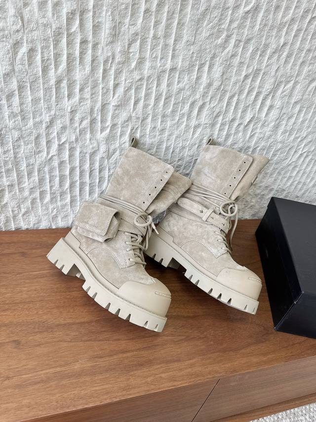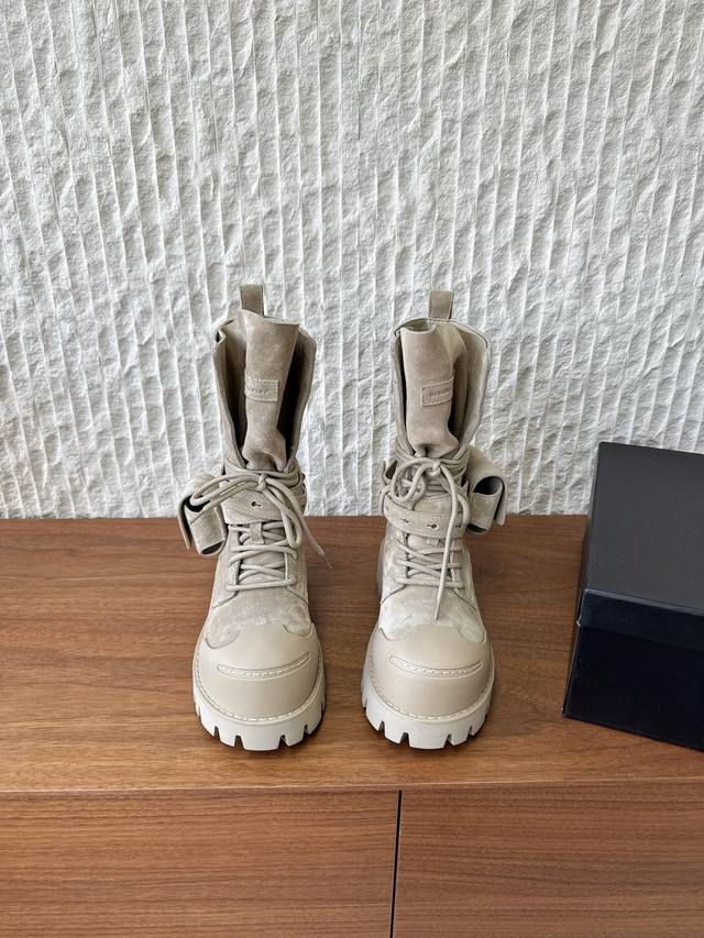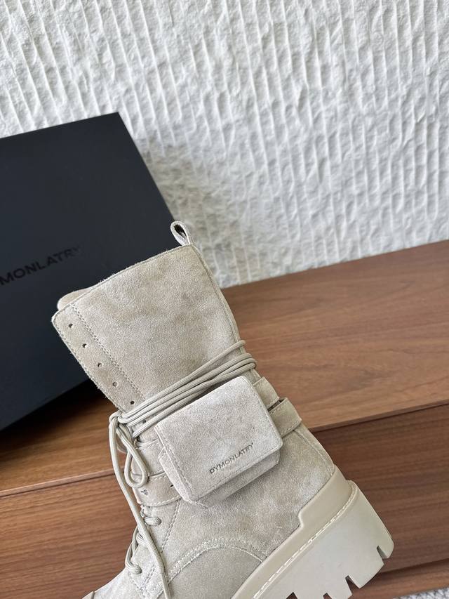 G236 Dymonlatry 小众潮牌 22Ss秋冬新款 机车靴 马丁靴 “Bastion堡垒”25秋冬系列以机能工艺大底重塑经典马丁靴,宽松散口廓形,慵懒中注入浪漫韵味,脚踝处缠绕耳机包带采用可拆卸设计 赵露思 Yamy同款上脚原版开模细节到位 面料:采用原版进口牛皮 麂皮 内里垫脚:牛皮 莱卡布 大底:原版定制橡胶Tpu车线组合大底 码数:35-40 40定做不退换