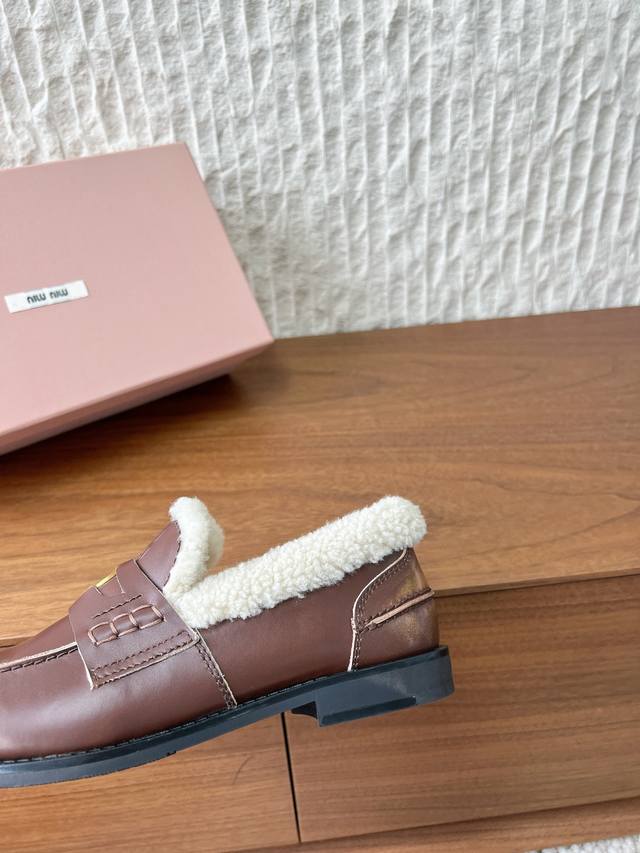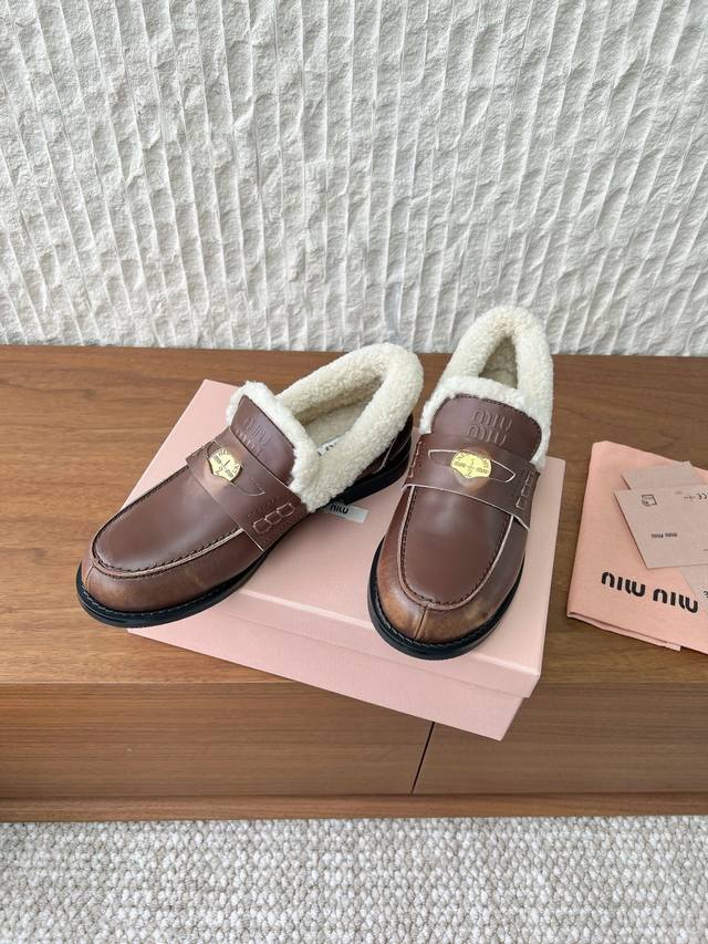 G256 Miu Miu 缪缪 25Ss秋冬新款 金币 乐福鞋 毛毛鞋 DDD 超多明星时尚博主种草 毛茸茸的看着就暖和 DDD 新出的‘小钱币’真的让人一整个心都融化 DDD 除了中间夹着一颗钱币这种细节之外 DDD 鞋型整体都狠秀气不笨重 鞋头形状是‘小翘鼻、上脚超级好看 DDD 鞋面:采用原版定制高丝光牛皮 牛反绒 DDD 内里垫脚:真羊 DDD 鞋底:原版定制橡胶防滑大底 DDD 码数:35-39 40定制不退换 DDD