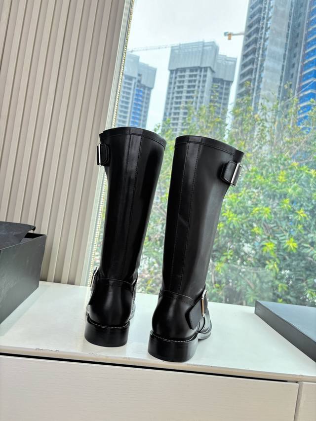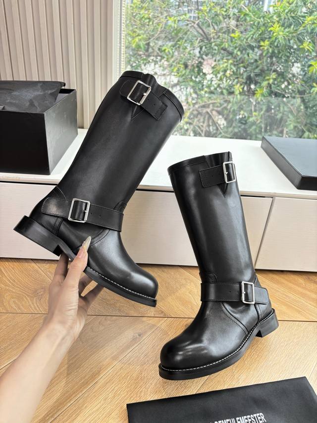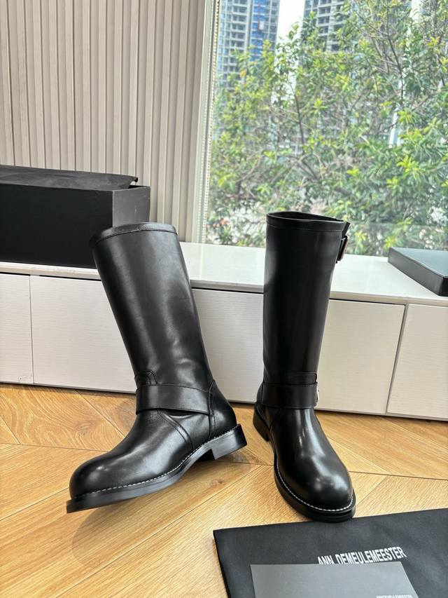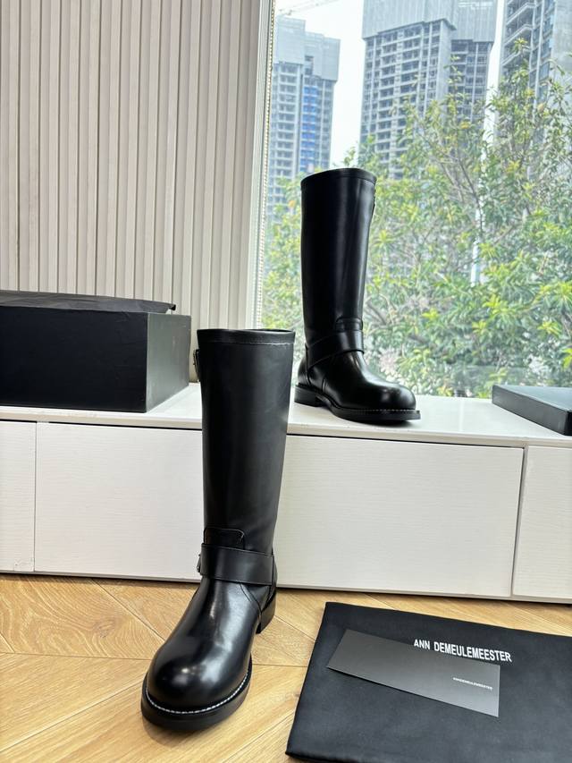 G261代购级别 所见即所得Ann Ann Demeulemeester 饰扣袢可拆设计及膝靴 Demeulemeeste秋冬系列款骑士靴长靴鞋型硬朗气质,细节