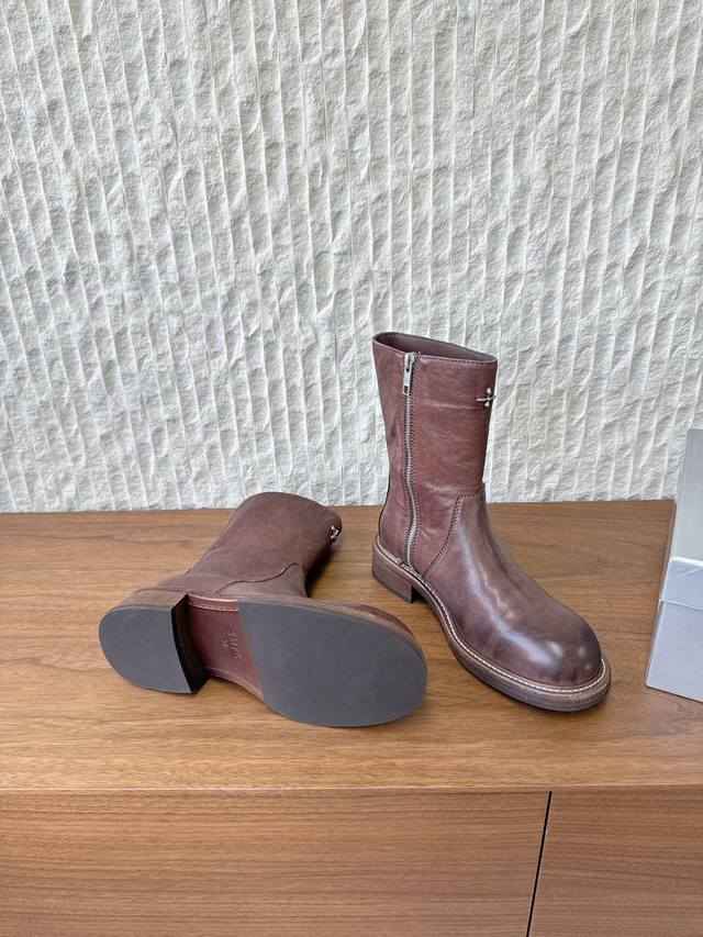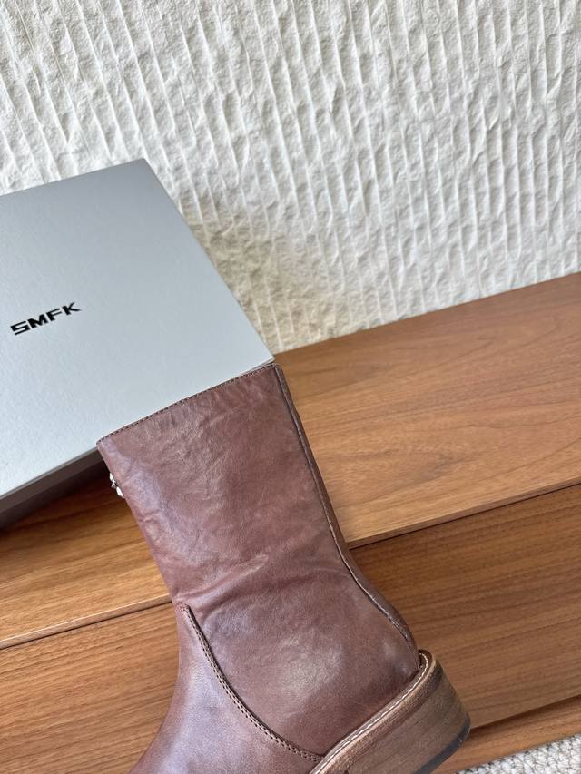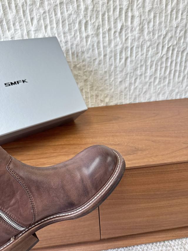 G266 Smfk 小众潮牌 25Ss秋冬新款 拉链 骑士靴 短靴 含金量谁懂 秋天里的一抹黄,其实它很帅升级版的 这双是很有质感的油蜡黄色 配合马皮面料制作而成 大底使用固特异工艺进行固定缝合 主要是上脚穿真的显腿细,搭配秋冬深色特别出彩帅气 面料:采用原版进口做旧马皮 内里垫脚:牛皮 鞋底:原版定制真皮沿条大底 Size:35-40 40订做不退换