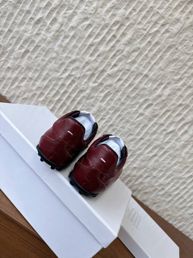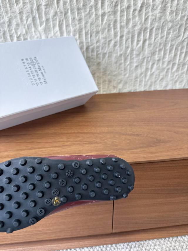 G279 Maison Margiela 马吉拉 25Ss秋冬新款 情侣款 阿甘鞋 德训鞋 新款Sprinters轮廓采用做旧植柔牛皮制成,灵感来源于复古。通过做旧、缝线、拼接等工艺,赋予单品新的生命和美感。舌有经典的数字标志,搭配有防滑的钉状鞋底,鞋尾饰有标志性的白色缝线Logo,充满工艺感。 面料:采用原版进口牛皮 内里垫脚:羊皮 鞋底:原版定制橡胶大底 码数:35-44 女码40,男码45定做不退换