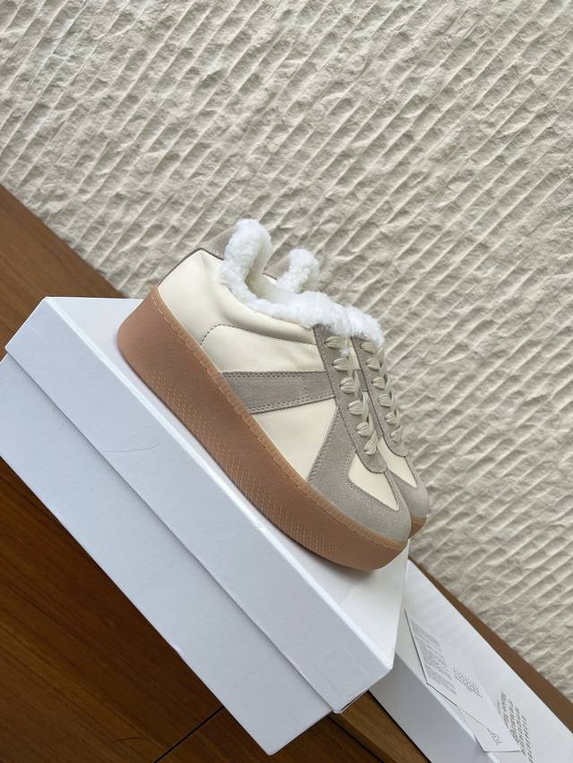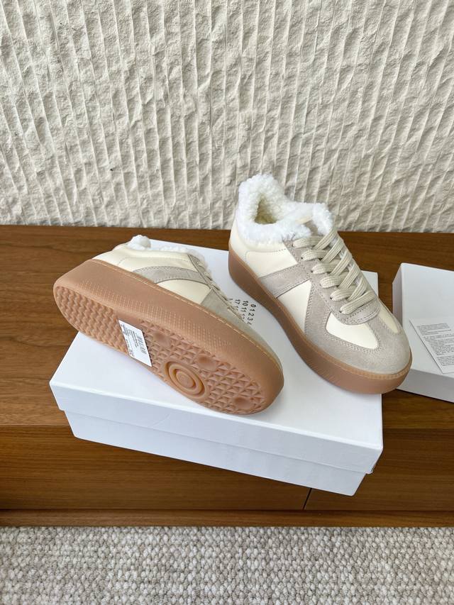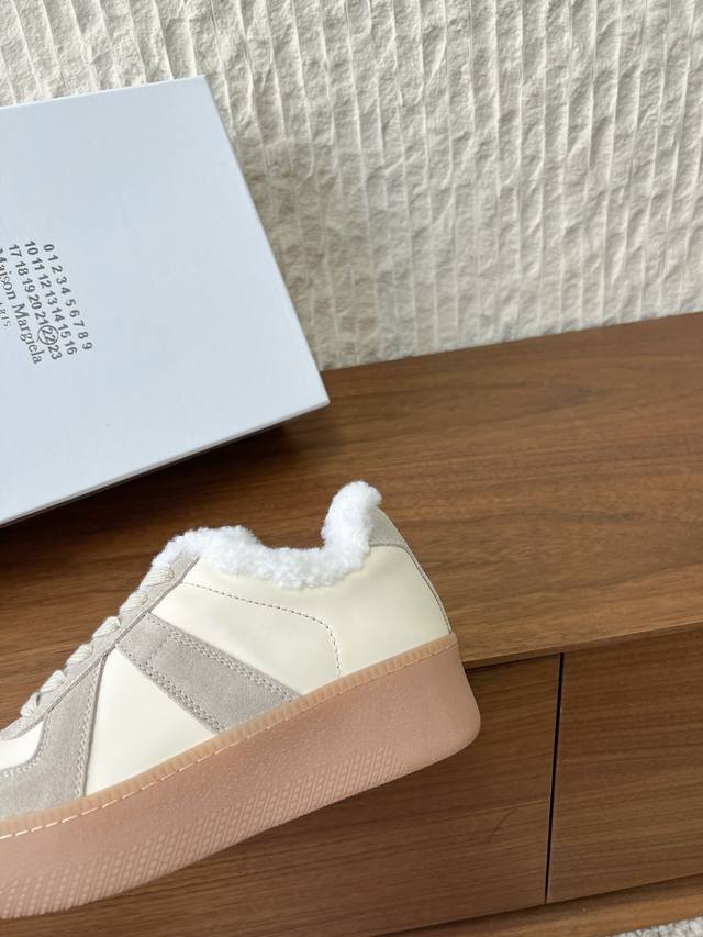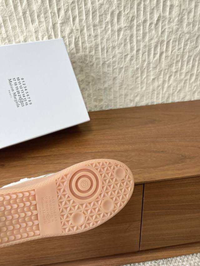 G295 Maison Margiela 马吉拉 25Ss新品 绒里 厚底 德训鞋 DDD Mm6厚底德训鞋来啦 太戳时髦点了 色调柔和又高级 厚底设计悄悄增高还特显腿细 不管搭休闲装还是轻复古风 都能一键解锁随性又亮眼的造型~ DDD 搭配马吉拉新出的厚底德训,让我直接比例拉高的同时,也给原本成熟的老钱风增加一丝活力,别看鞋底厚厚的,鞋子意外的轻 DDD 在城市里航行一整天也不累 DDD 鞋面:采用原版进口牛皮 牛京 DDD 内里垫脚:羊皮 DDD 跟高:4Cm DDD 大底:原版定制橡胶大底 DDD