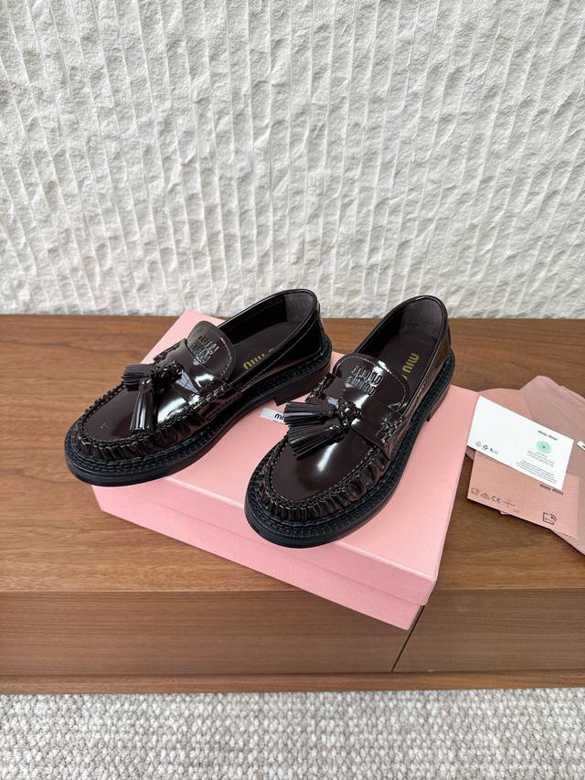 G319 Miu Miu 缪缪 25Ss秋冬新款 流苏款 乐福鞋 这季度的Miu简直都太绝了 全系列陆续开始上新 全系列原版购入开发 鞋面:采用原版进口牛皮 内