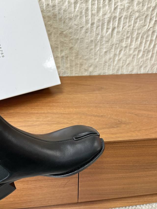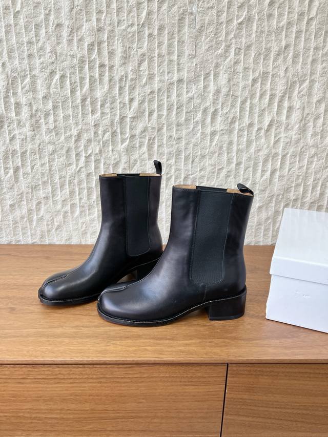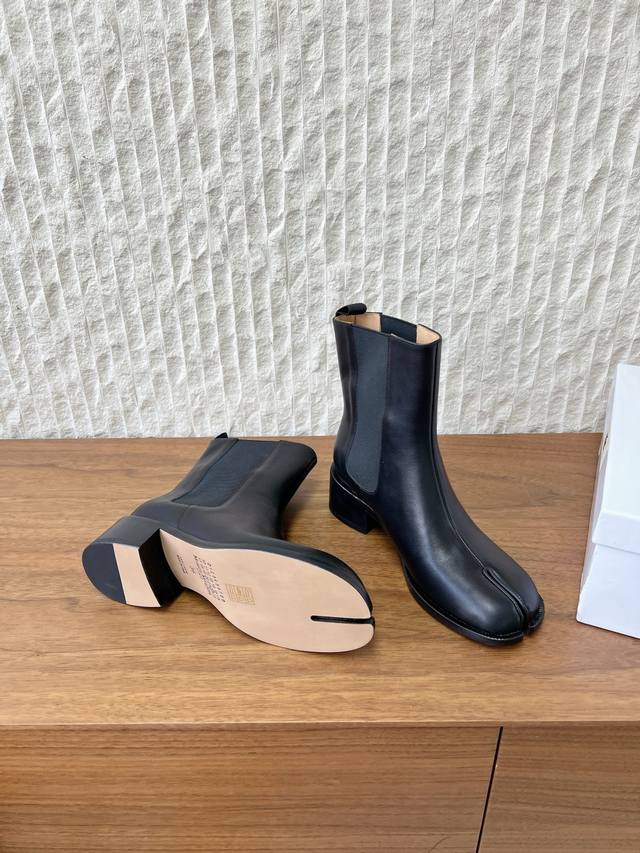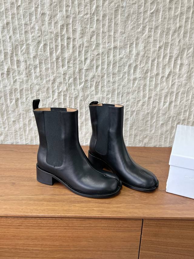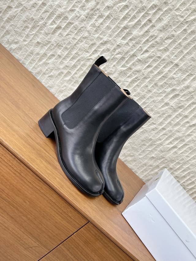 G321 Maison Margiela 马吉拉 25Ss秋冬新款 Tabi分趾 切尔西 短靴 DDD 当哥特式建筑的凌厉线条邂逅东方余韵 这款短靴以先锋姿态重构经典 DDD 让传承与颠覆在靴履间共生。 DDD 侧边弹力布与后部标志性形成视觉反差 DDD 低调展露手工痕迹与品牌身份 。 DDD 搭配廓形大衣与直筒裤 就是街头风 DDD 配针织裙与袜套 就是前卫的碰撞。 DDD 每一步都踏在舒适与格调的平衡点上 DDD 让Tabi的反叛精神融入秋冬日常 DDD 鞋面:采用原版进口小牛皮 DDD 内里踮脚:牛