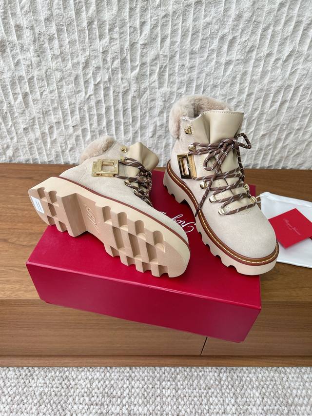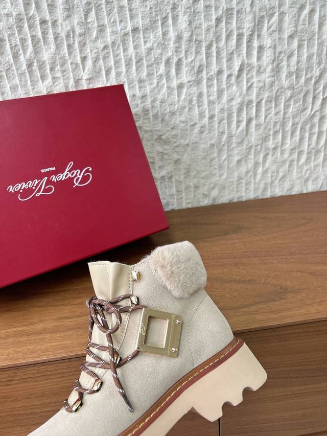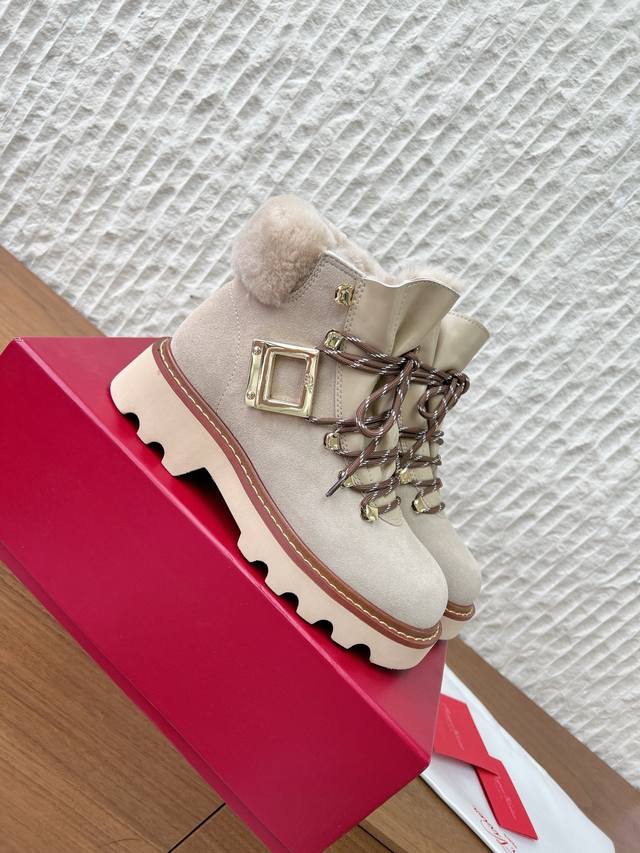 G503 Roger Vivier 罗杰维维亚 方扣系带 厚底 马丁靴 短靴 DDD Viv Rangers Truck系列个性又不失精致,演绎都市风格。本款皮靴以绒面皮革制成,搭配防滑厚底,点缀标志性饰扣,轻松为任意造型增添个性。 DDD 发掘的时尚潜力,捕捉都市摩登掠影。几何设计,结合Vivier特别的金属搭扣,融合品牌专有工艺与大胆不羁的时尚风格。 DDD 鞋面:采用原版进口高丝光牛反绒 牛皮 DDD 内里垫脚:羊毛 DDD 跟高:5Cm DDD 鞋底:原版定制真皮沿条发泡橡胶大底 DDD 码数:3
