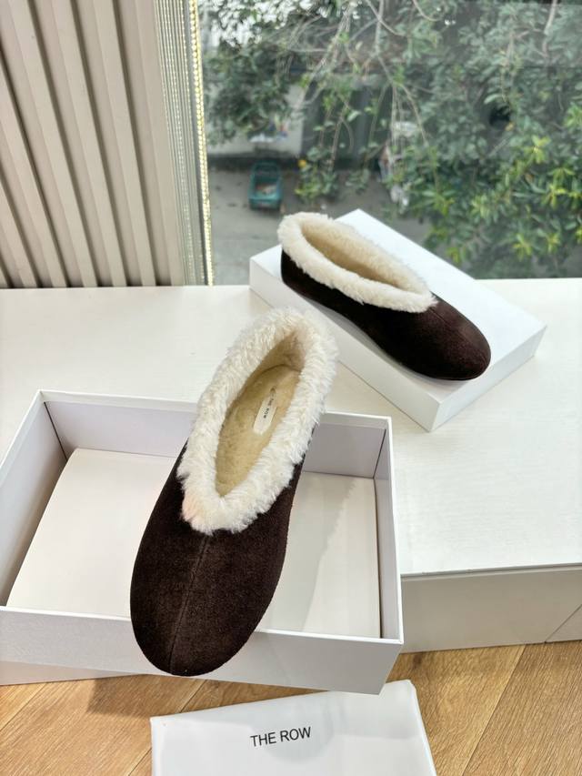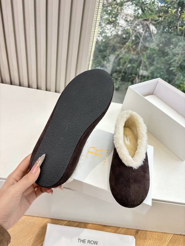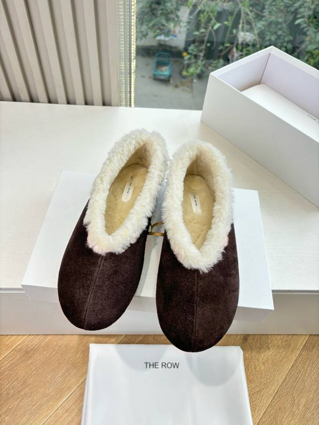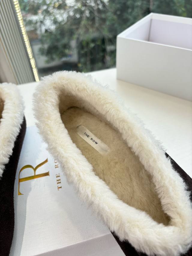 G679所见即所得The Row 25Wf新品复古毛毛鞋双毛毛鞋以品牌标志性极简美学 注解秋冬“宅家精致主义”。 甄选柔密羊毛短绒包裹鞋面 焦糖等低饱和杏系呼应