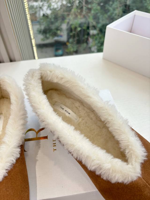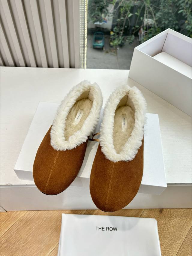 G679所见即所得The Row 25Wf新品复古毛毛鞋双毛毛鞋以品牌标志性极简美学 注解秋冬“宅家精致主义”。 甄选柔密羊毛短绒包裹鞋面 焦糖等低饱和杏系呼应