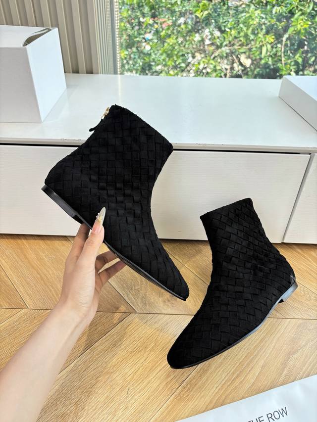 G679The Row手工编织平底短靴 以极简之姿勾勒出静默的高级感 成为懂质感者的足下默契。 圆头设计是温柔的注脚 适合每种脚型 短靴筒利落包裹脚踝 线条从鞋