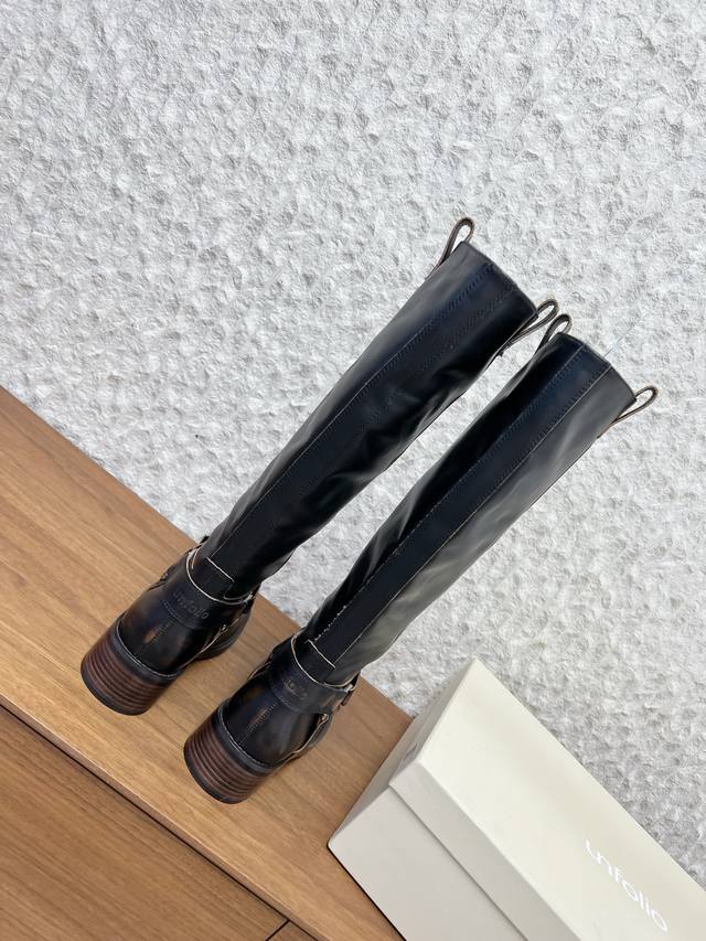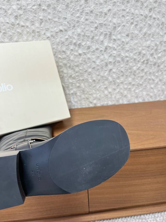G741 Unfolo 小众潮牌 25Aw秋冬新款 Harper搭扣 中筒靴直筒靴 长靴 DDD Harper 搭扣及膝靴以材质巧思演绎机车踝靴格调。黑色与栗棕色款选用树膏牛皮,自带细腻肌理与温润光泽,随穿着渐显特有质感 DDD 黑擦棕色款则采用可擦色牛皮,经手工做旧处理,每一处纹理都透着随性与使用过的故事感。内里依配色差异化设计,分别搭载牛皮、柔滑羊皮与亲肤织物,适配不同穿着需求。 DDD 金属搭扣特别采用做旧质感表面工艺,色泽温润不张扬。 DDD 鞋面:采用原版进口牛皮 DDD 内里垫脚:织物羊皮 D