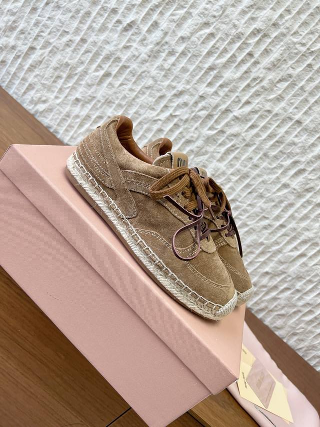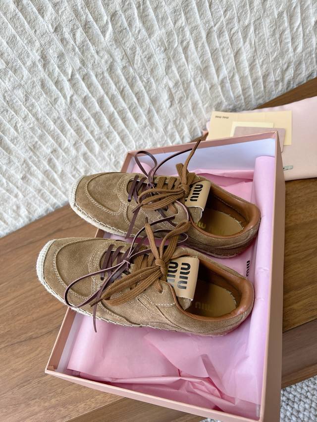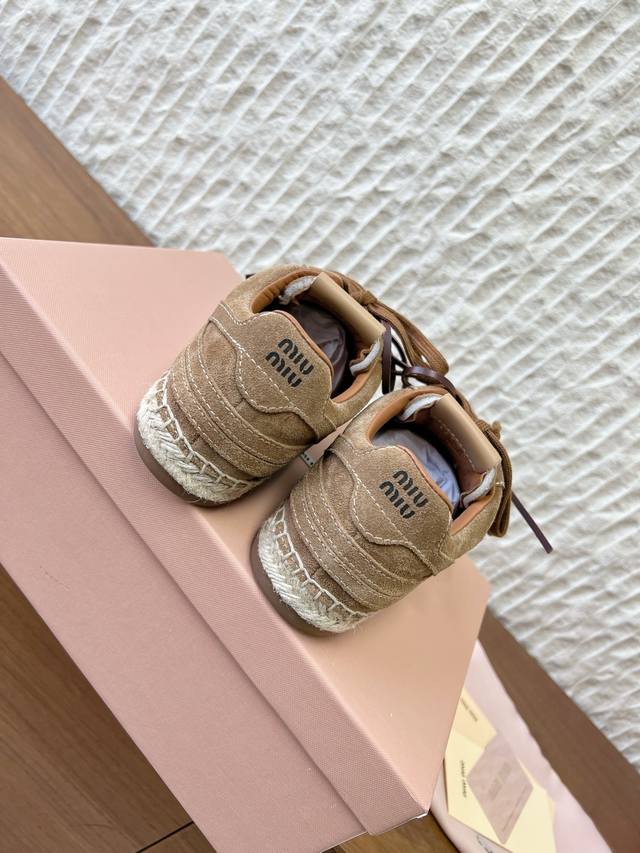 FFF G762 Miumiu 缪缪 26Ss早春新款 系带 复古 麻绳底 渔夫鞋 德训鞋 DDD 工艺来自Miu Miu系列的细节特写 新季的潮流此刻挚爱的概念 DDD 多元对撞,复古麻绳底,传达现代风格~ DDD 怎么穿都好看,时髦精最爱 这么多颜色最爱咖色 DDD 鞋面:采用原版进口牛皮 牛反绒 DDD 内里垫脚:牛皮 DDD 大底:原版定制麻绳橡胶工艺大底 DDD 码数:35-39 40.定做不退换 DDD