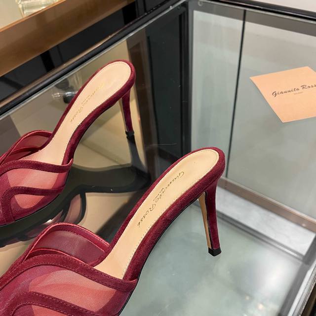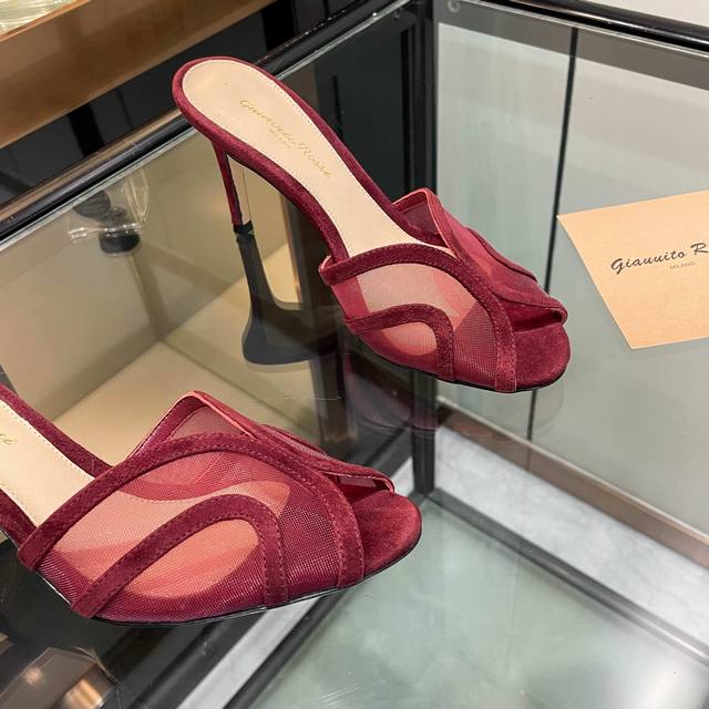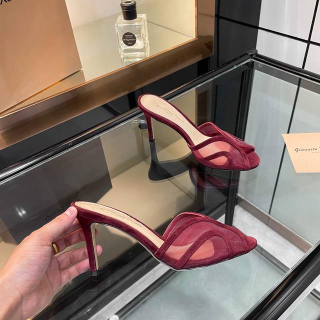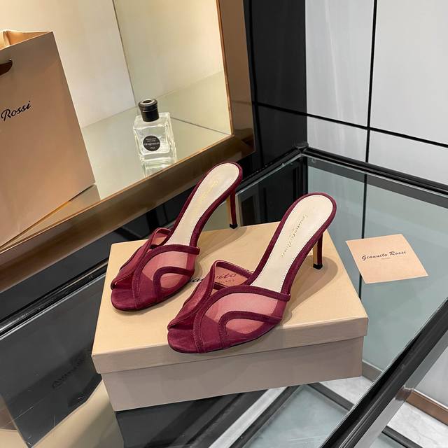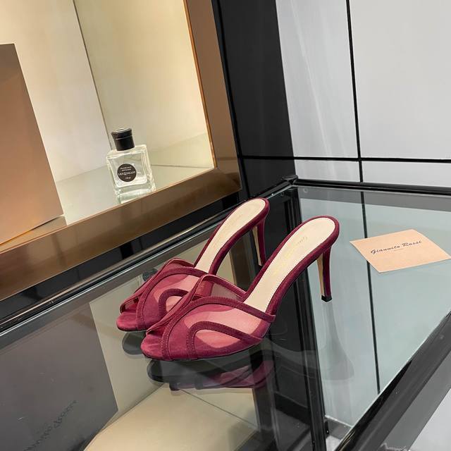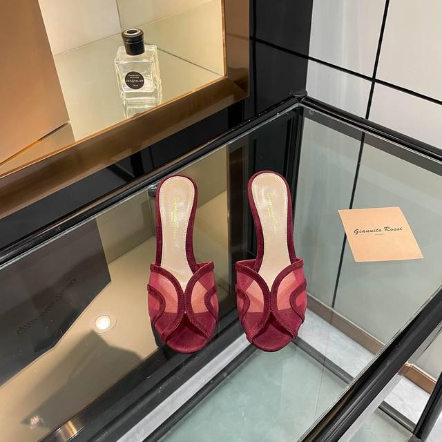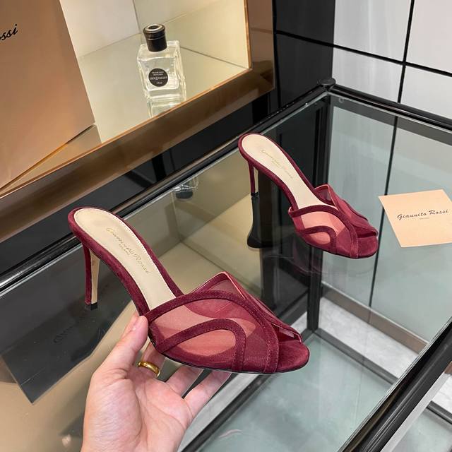 Gianvito Rossi 2025 新款拖鞋 顶级版本! 代购品质!施华洛奇水钻圆头高跟拖鞋,宛如从童话中走来的仙履。施华洛奇水钻璀璨耀眼,如同繁星点点镶嵌