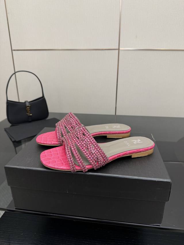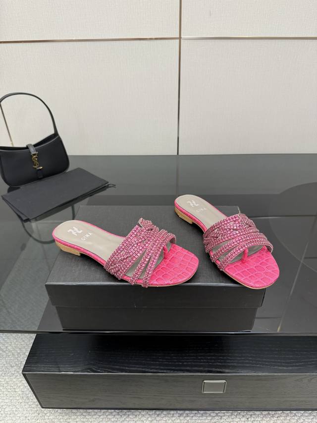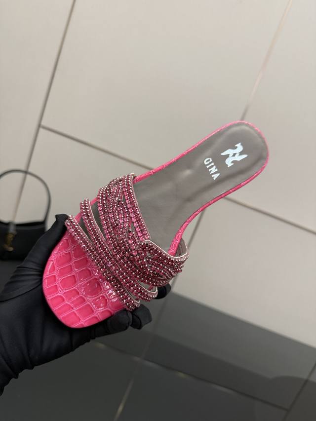 Gina 吉娜 最新款钻面高跟凉拖 时尚凉鞋,原版开发设计 市场最高版本纯手工钻拖 经典之最,真正的手工钻石 连针线走线数量都和原版一样, 大师级纯手工打造 !