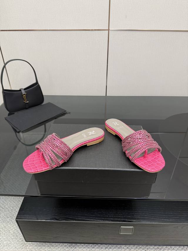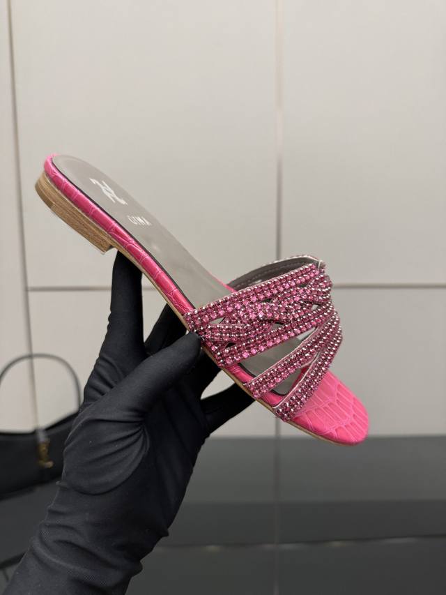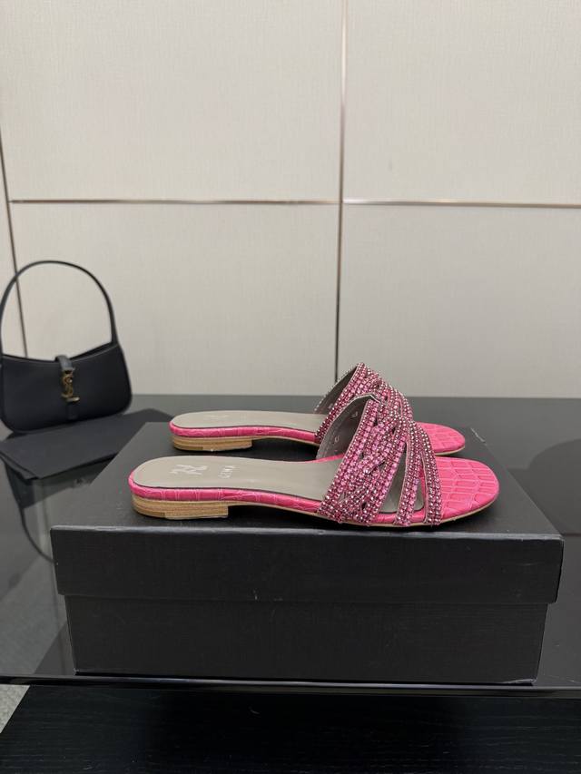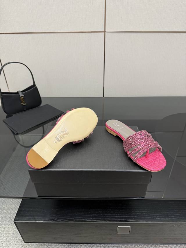 Gina 吉娜 最新款钻面高跟凉拖 时尚凉鞋,原版开发设计 市场最高版本纯手工钻拖 经典之最,真正的手工钻石 连针线走线数量都和原版一样, 大师级纯手工打造 !上脚舒适不累脚 高端定制,独家产品,行业最高版本 鞋面:进口水钻+漆皮 大底:意大利真皮大底 ~~ Gina Size :35-43 40.41.42.43定做不退换 Height :平底