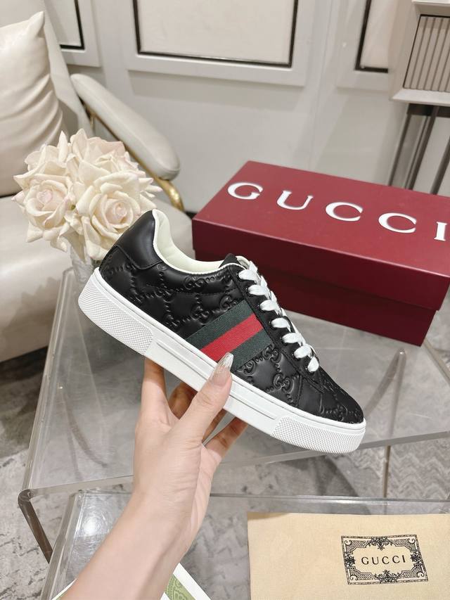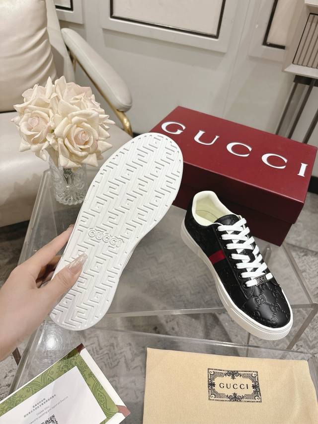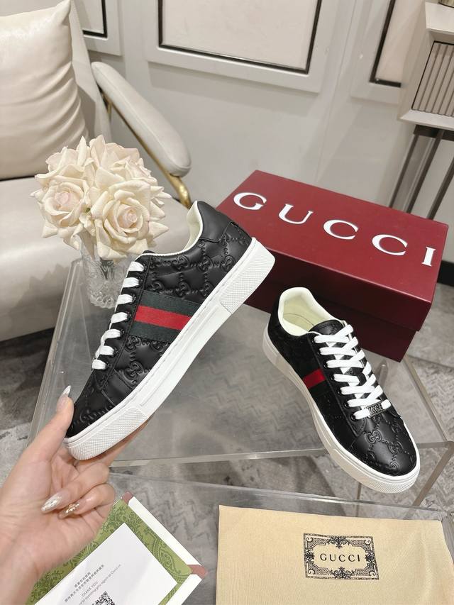 / Gu**I古*驰最新Ace系列pro版小白鞋 原版购入开发 Ace系列运动鞋延续品牌叙事,匠心成就主打单品。 配送专柜精美包装 面料: 牛皮+原版进口面料 内里