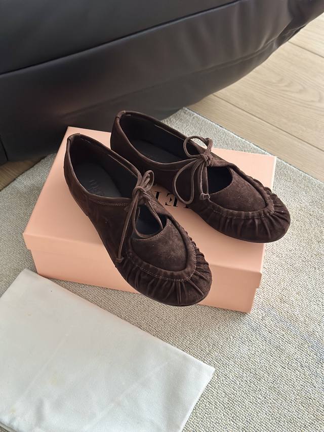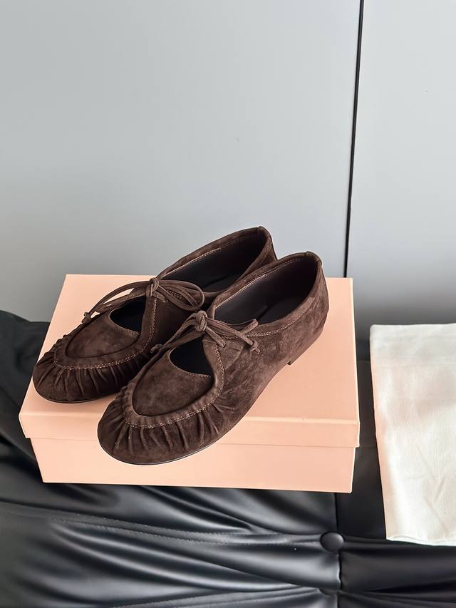 Hereu西班牙早秋新款系带芭蕾鞋褶皱蝴蝶结玛丽珍乐福鞋 DDD 简洁大方。鞋头部分微微上翘,线条流畅自然,既美观又能减少行走时鞋头与地面的摩擦。鞋身前部采用了系带蝴蝶结的设计元素,这种设计打破了传统乐福鞋的单调感,增添了一丝俏皮与甜美气息;而褶皱细节处理则让鞋子更具层次感和立体感。 DDD 鞋面采用原版进口羊皮 羊反绒,内里垫脚羊皮,意大利真皮大底 DDD 码数:35 40 40定做不退不换 DDD