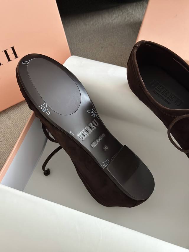 代购级 Miumiu 25Ss 秋冬款厚底双鞋带饼干鞋...