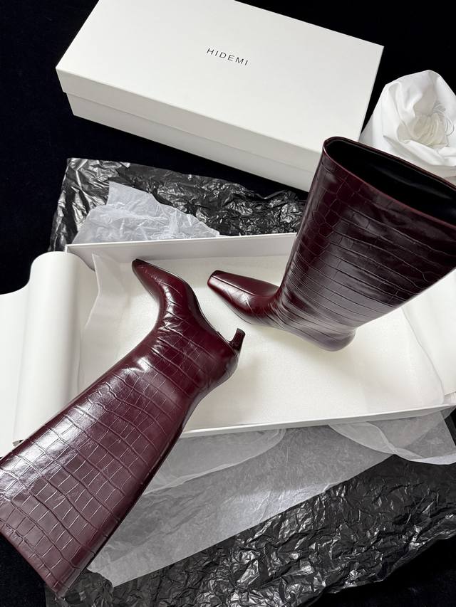Hidem* 新品 太懂时髦了 鳄鱼纹皮革自带酷飒气场 方头细跟一整个把复古与高级感拉满~不管是配裙子还是裤子 都能瞬间让造型“支棱”起来 出街绝对赚足回头率