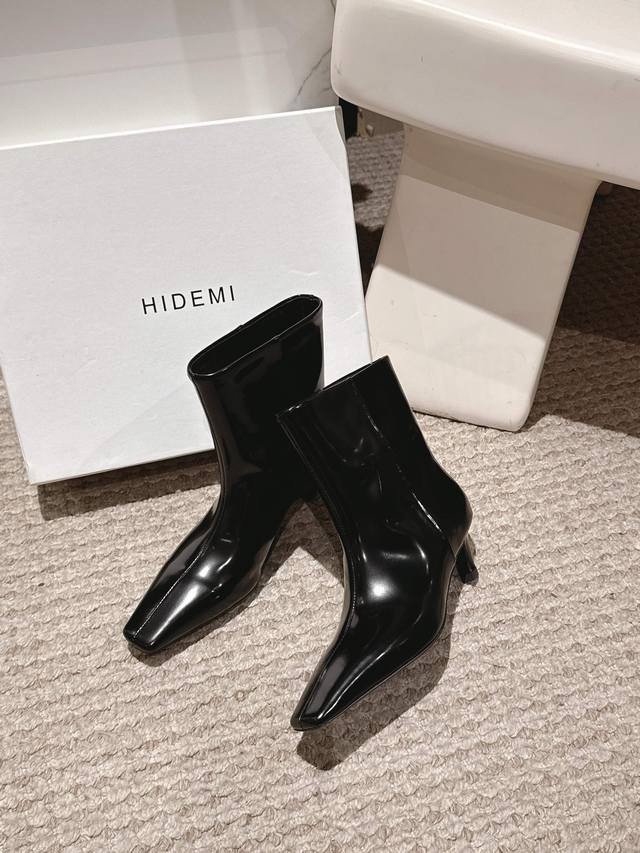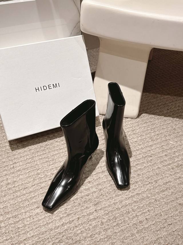 Hidemi 2025秋冬新款方头靴,每一季都让人惊叹不已,治愈有力量,视觉加倍享受,穿上就是时髦精,对版漆皮牛皮面料面料,羊皮内里,对版私模大底,码数:35-