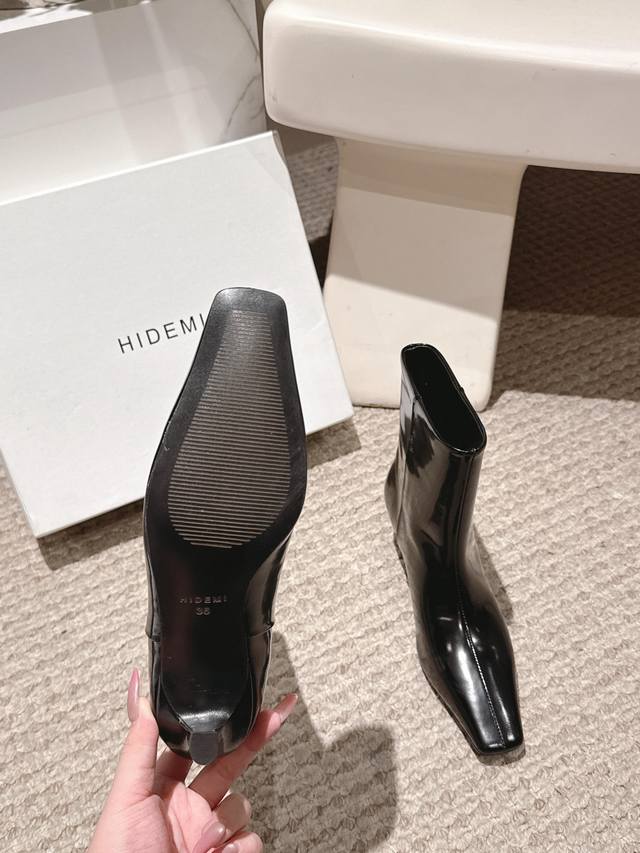 / Hidemi 2025秋冬新款方头靴,每一季都让人惊叹不已,治愈有力量,视觉加倍享受,穿上就是时髦精,对版漆皮牛皮面料面料,羊皮内里,对版私模大底,码数:35-