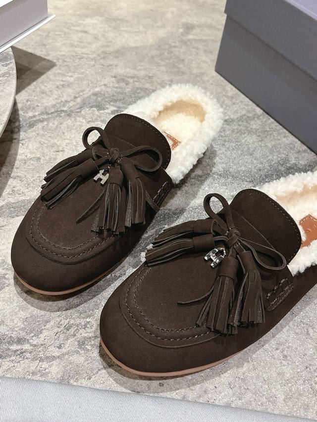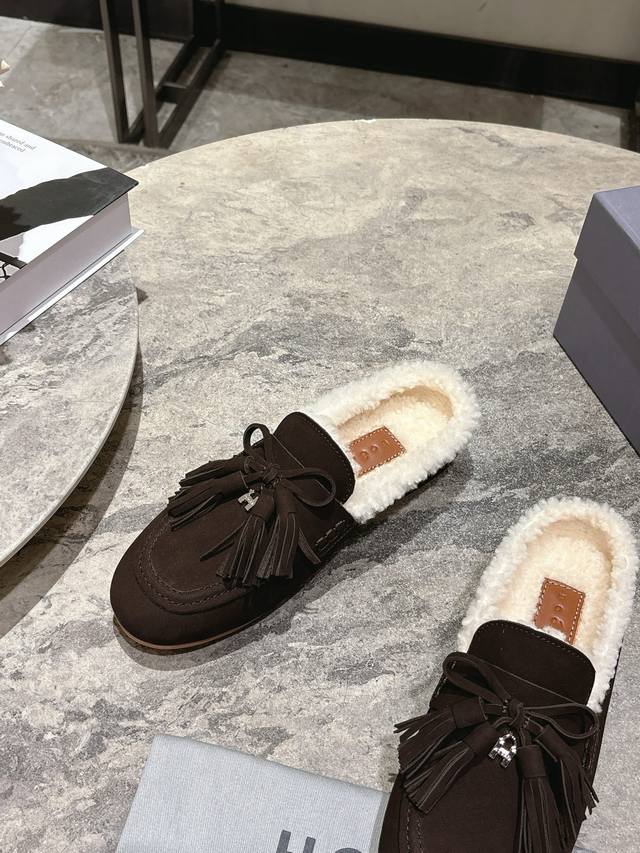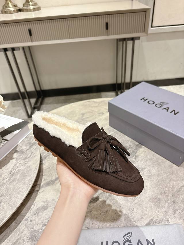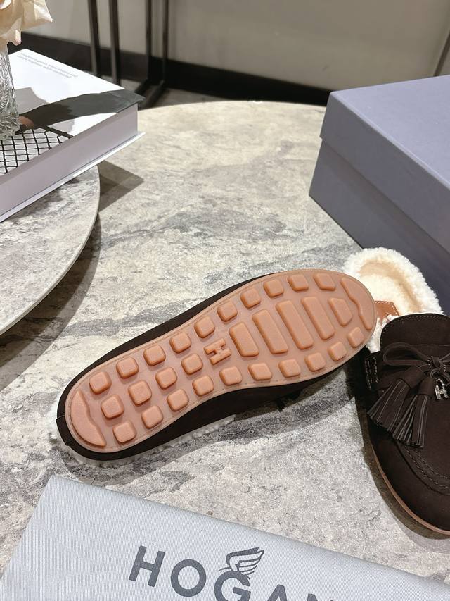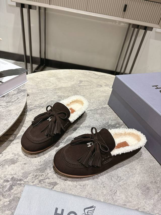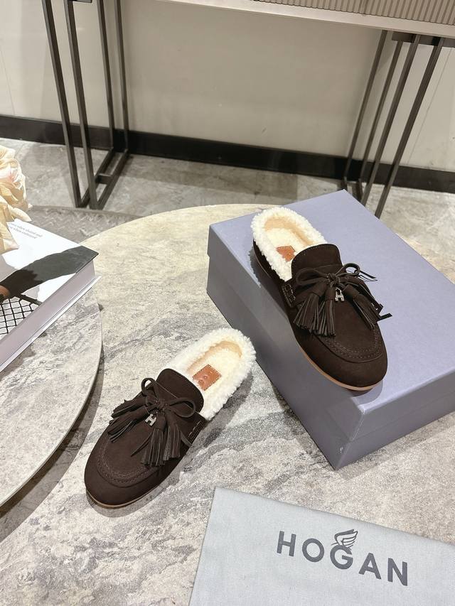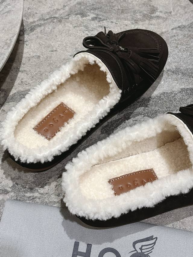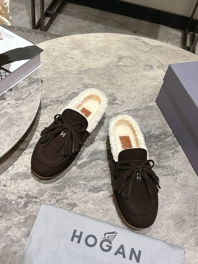/ Hogan 2025秋冬乐流苏串珠老钱风羊毛半拖 太好看了,麂皮“一脚蹬”复古鞋~俏皮的系带流苏,复古的干异色系,内里羊毛的设计让穿着体验度更加高涨非常舒适又洋