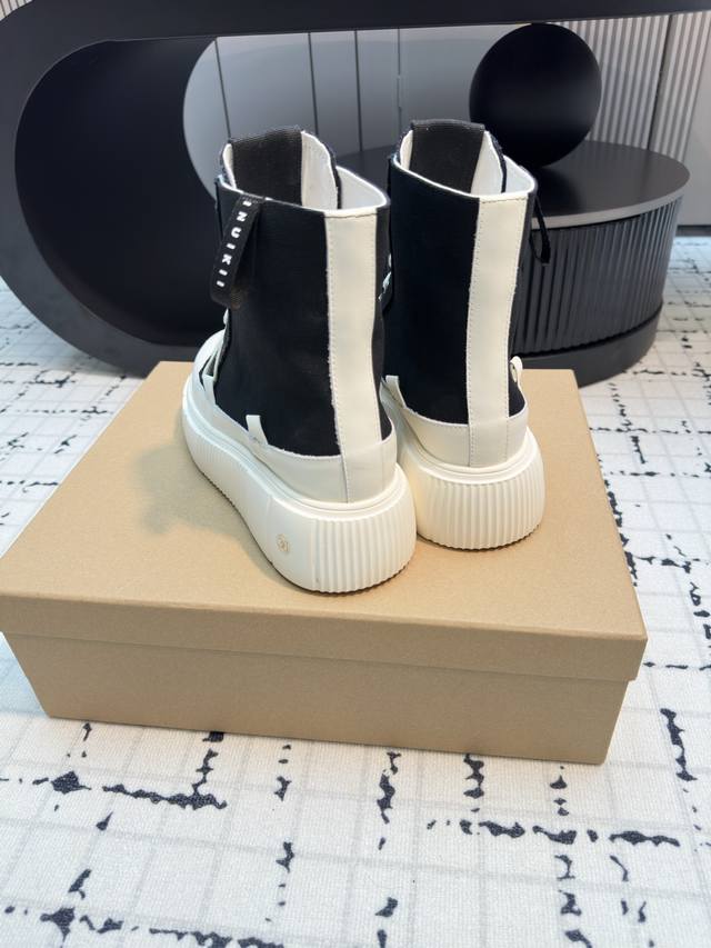 / Inuikii新款高帮饼干鞋!主打好看 ,标志性解构化廓形,鞋身以简约立体线条,鞋面覆盖透气帆布面料,注入上层柔 软提升脚感,采用廓形橡胶厚底,穿着显瘦显腿长,