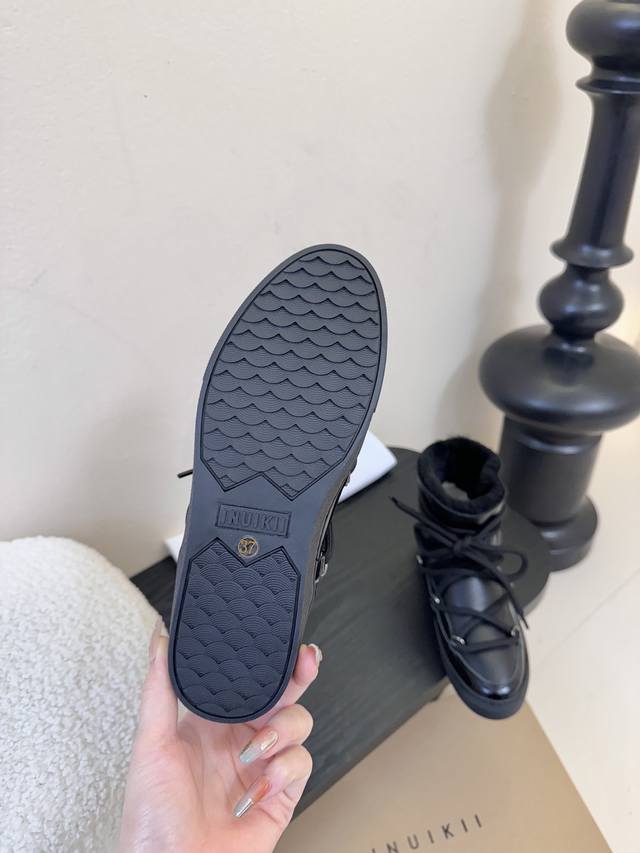 / Inuikii雪地靴 .鞋面牛毛一体牛油皮,光泽细腻柔软加厚的面料不仅增加舒适度且兼具保暖效果! 鞋面:采用原版皮毛一体牛油皮 内里:真羊毛里 垫脚:真羊毛 大