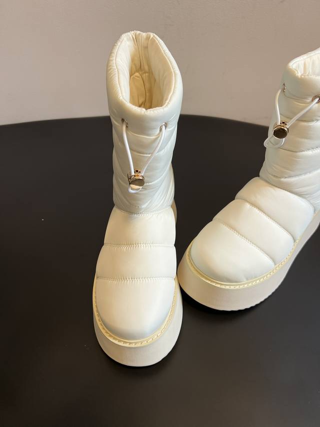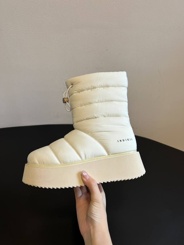 Inuikii 25Ss新款防水羽绒雪地靴 DDD 采用羽绒填充设计,靴内形成温暖舱室,能有效抵御严寒,适合冬季低温环境穿着。鞋面选用防水面料,搭配防滑橡胶大底,应对雪地、湿滑路面时抓地力强,避免打滑风险。靴口处的抽绳可灵活调节松紧,既能防止寒风灌入,又能根据穿搭需求调整靴型轮廓。 DDD 整体设计轻盈,穿着时无沉重感,同时内部空间宽松,不挤压脚部,长时间行走也不易疲劳。黑白等经典配色简约大气,短筒与中筒款型适配多种裤装,兼具功能性与潮流感。 DDD 材质:防水羽绒 DDD 内里:布面 DDD 大底:原版