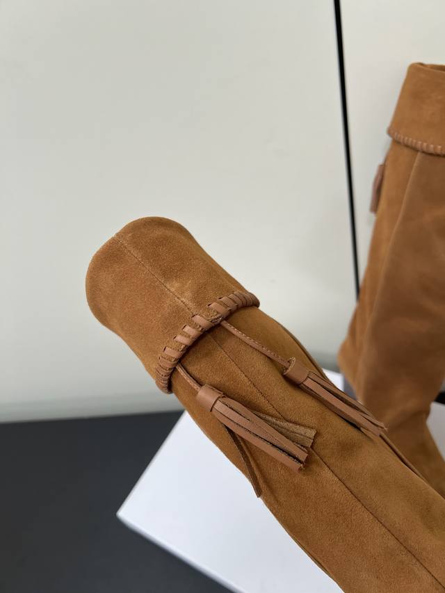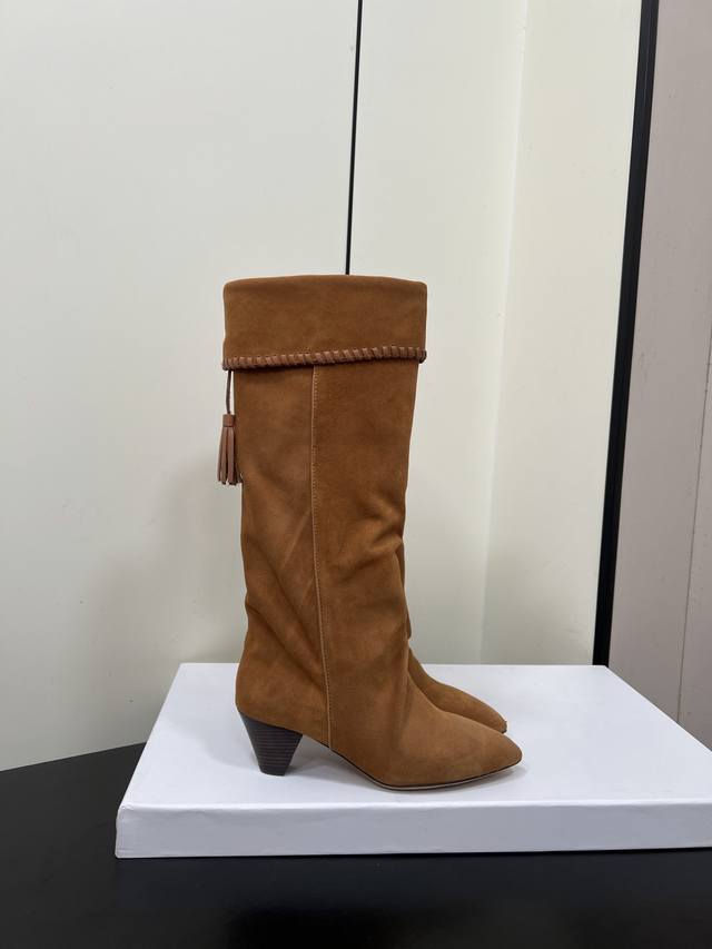 Isabel Maeant 伊莎贝尔25Ss编织包边流苏吊坠粗跟高筒靴 DDD 在波嬉风大热的当下,屐现的是对自由的渴望 DDD 松弛却又不失精致的穿衣态度,藏着我爱的矛盾美学正如浪漫的刺绣套装,轻盈又带细腻纹路与自带流浪感的复古平底金属骑士靴组合 DDD 让人想起Isabel Marant 秀场上的女孩,她们披着流苏,踩着罗马凉鞋奔向风“精致,但永不驯服〞信奉着自由才是唯一的法则~ DDD Material 材质 DDD 鞋面:进口高丝光牛反绒 DDD 内里:小牛皮 DDD 大底:真皮大底 DDD Si