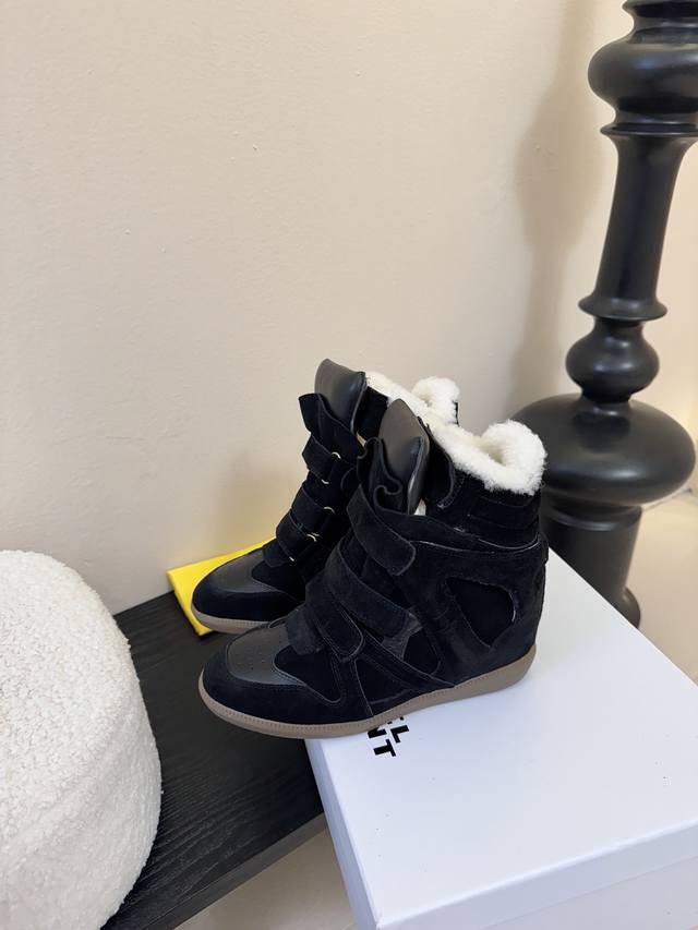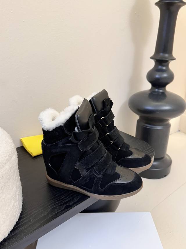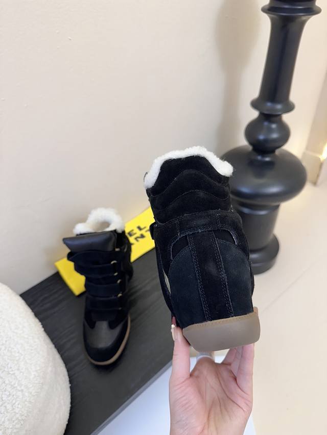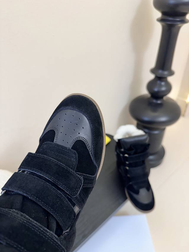 Isabel Maran*楔形增高加绒运动鞋 DDD 自带7Cm隐形楔形鞋跟,悄悄拉长腿型,同时保持运动鞋的舒适步态,不会像高跟鞋那样累脚。常用麂皮+皮革拼接,质感高级;图中款式还加了毛绒内里,适合秋冬保暖。 DDD 高帮廓形+多道魔术贴绑带,设计辨识度高,既有运动休闲感,又带点酷飒的法式松弛感。能适配牛仔裤、连衣裙、Leggings等多种风格,是兼具增高、舒适、时髦的“万金油”单品。 DDD 鞋面:牛反绒 DDD 内里:羊毛 DDD 大底:橡胶大底 DDD 增高:7Cm DDD Size :35-40码