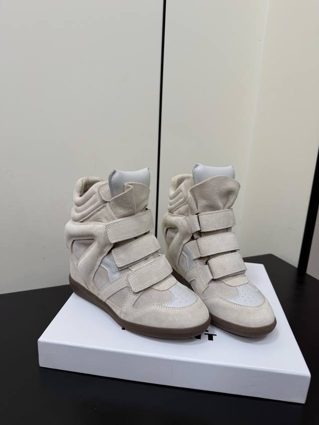 Isabel Marant 伊莎贝尔25款秋冬新款内增高休闲高帮鞋 DDD 一双简单又不失高级的靴子,拉长腿增高隐线大底!脚感特别舒适 随意百搭!超级适合街拍,好穿有Isabelmarant 于 2011 年首次推出了品牌的著名单品坡跟运动鞋 Bekett DDD 鞋面采用原版进口牛反绒 牛皮,内里羊皮,原版开模橡胶大底 DDD 内增高:6Cm DDD Size:35-40 40订做不退换 DDD