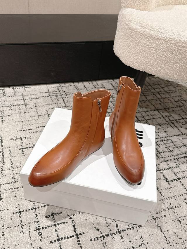 Jil Sander 吉尔桑达 25 秋季 最新 极简内增高及踝靴侧拉链圆头短靴切尔西奶奶靴 简约大气款!上身无敌修饰腿型!真的帅Bao了!!内增高设计上脚巨显