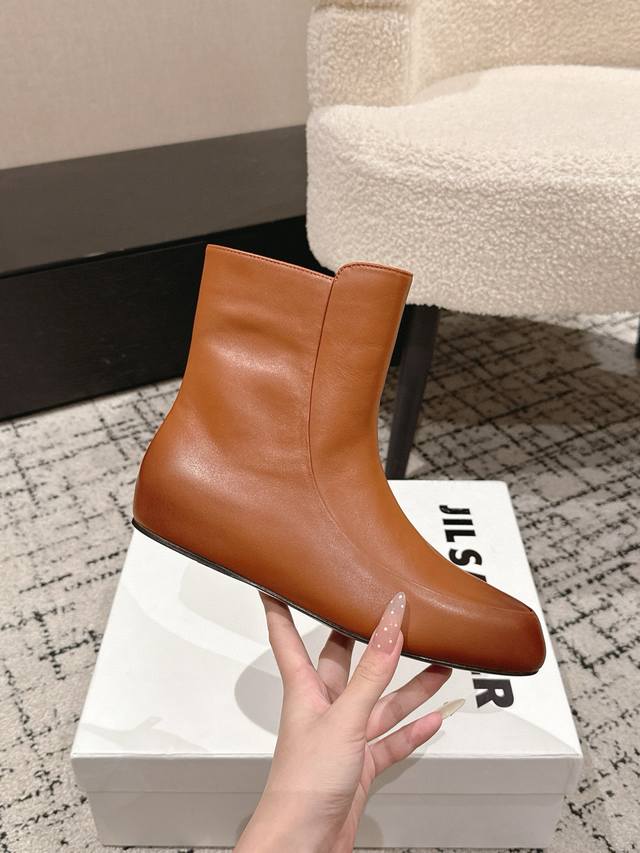 / Jil Sander 吉尔桑达 25 秋季 最新 极简内增高及踝靴侧拉链圆头短靴切尔西奶奶靴 简约大气款!上身无敌修饰腿型!真的帅Bao了!!内增高设计上脚巨显