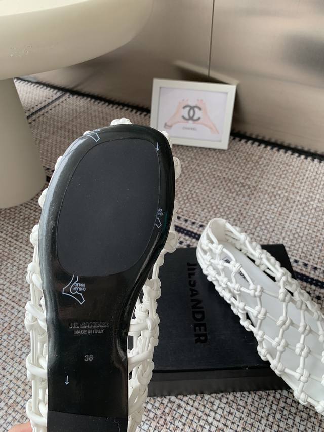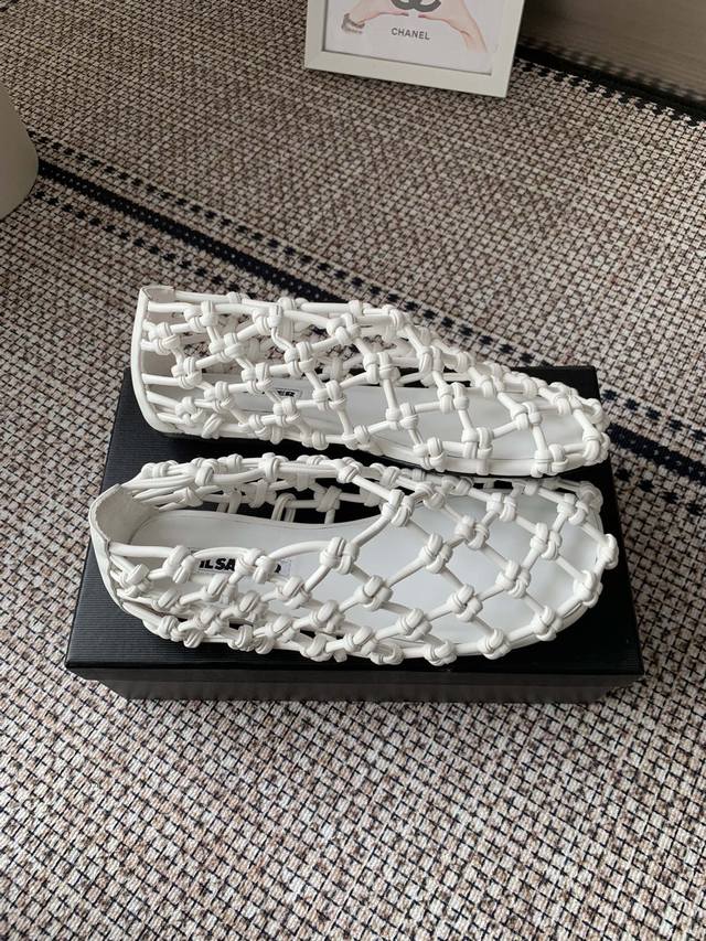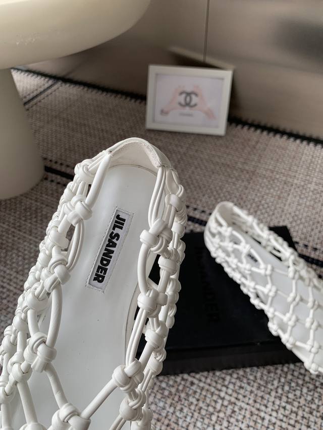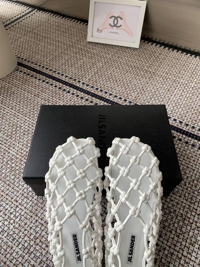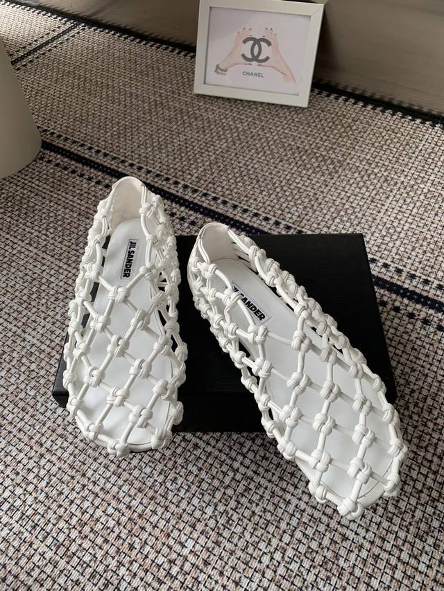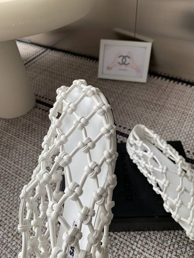 Jil Sander 吉尔 桑达 早春凉鞋系列 渔网编织单鞋 这款真的绝了 时髦到飞起 想不到有任何理由可以去拒绝这款凉鞋 随便凹个造型都满分极简主义当头编制
