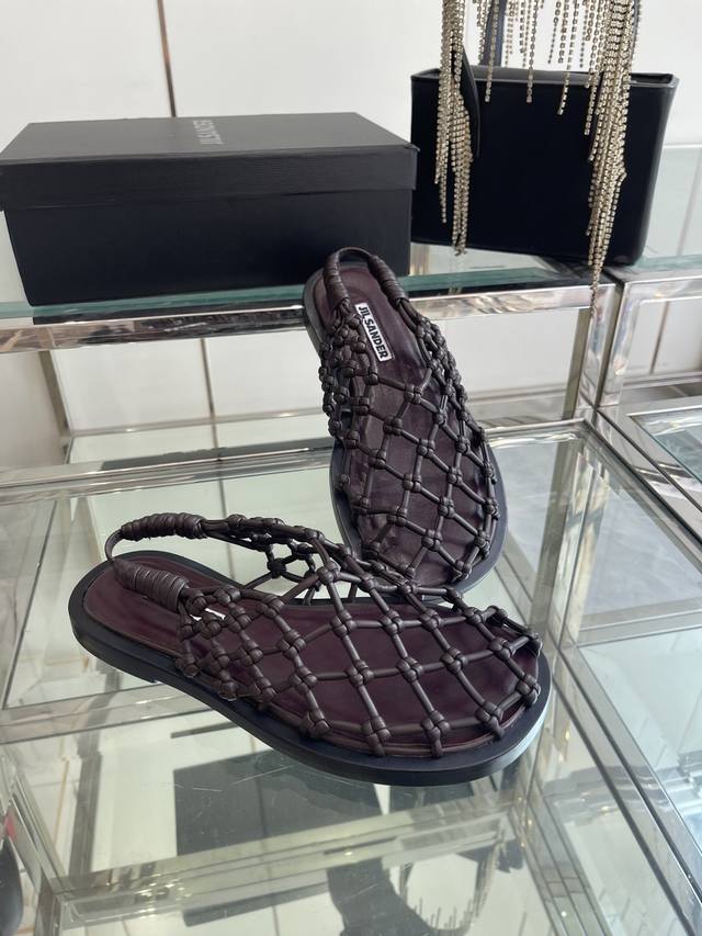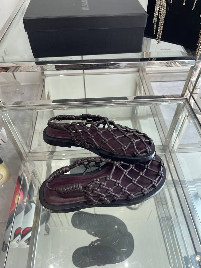 Jil Sander 吉尔 桑达 早春凉鞋系列 渔网编织单鞋 这款真的绝了 时髦到飞起 想不到有任何理由可以去拒绝这款凉鞋 随便凹个造型都满分极简主义当头编制