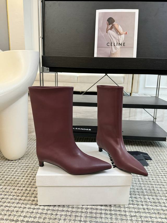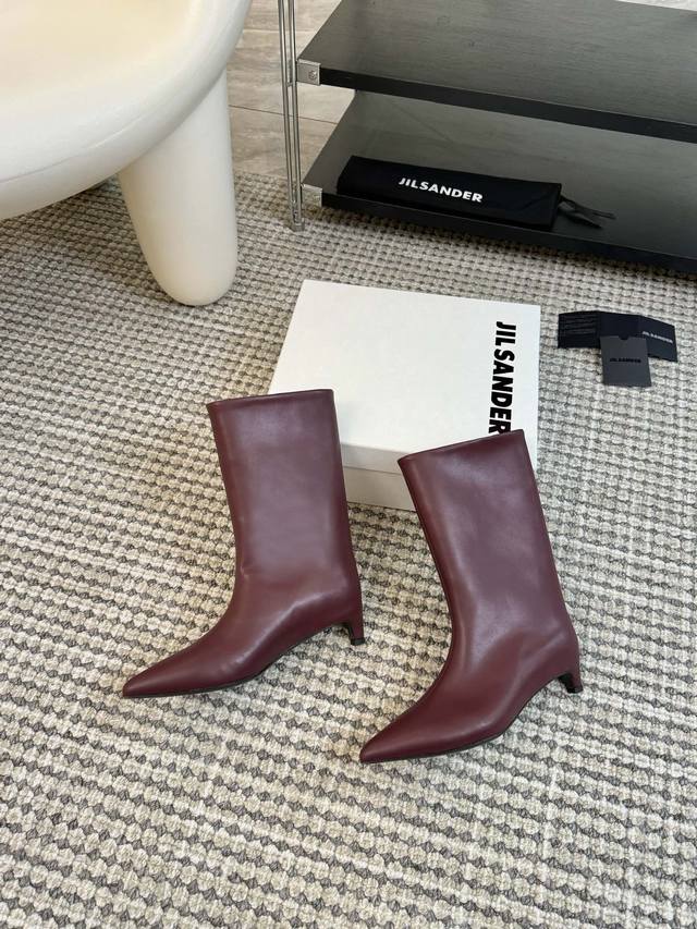 / Jil Sander Ss秋冬尖头低跟直筒靴 极简主义 柔软舒适矮跟鞋 时髦精绝对不能错过的必入款 没有任何繁杂装饰 质感极好的Vintage感 纯粹和极简做得