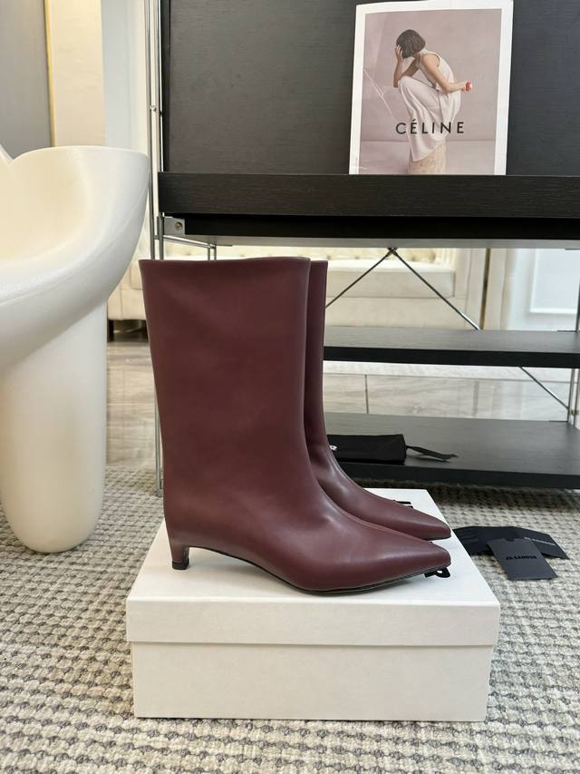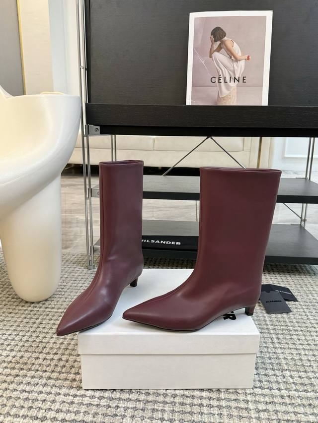 Jil Sander Ss秋冬尖头低跟直筒靴 极简主义 柔软舒适矮跟鞋 时髦精绝对不能错过的必入款 没有任何繁杂装饰 质感极好的Vintage感 纯粹和极简做得