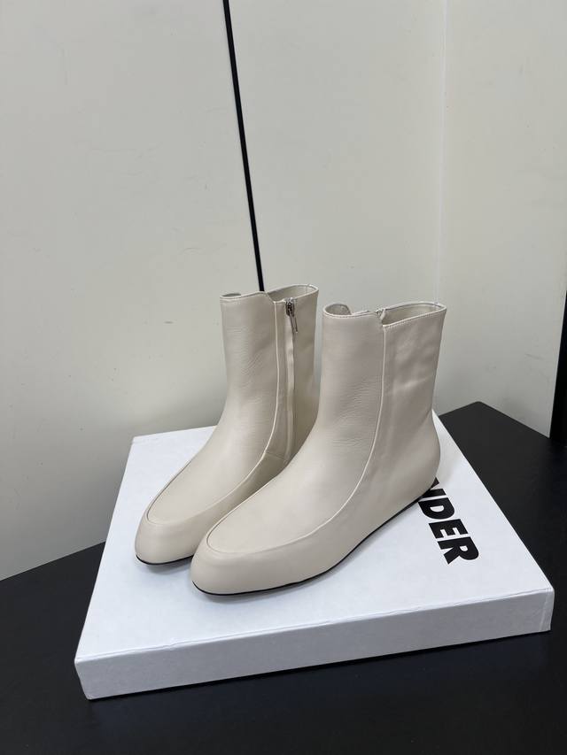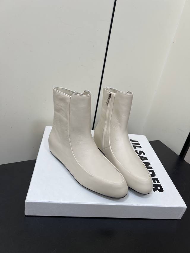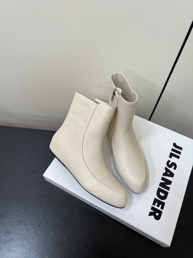Jilsander 吉尔桑达 25 秋季 最新 极简内增高及踝靴侧拉链圆头短靴切尔西奶奶靴 简约大气款!上身无敌修饰腿型!真的帅Bao了!!内增高设计上脚巨显腿