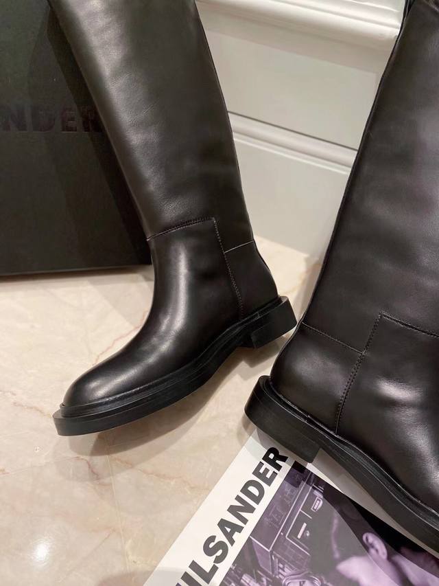 Jilsander 20Ss爆款网红长靴 代购都卖断货的靴子。这个牌子我真的超喜欢超喜欢超喜欢。简约 时尚。靴子鞋口斜切设计简直显腿长到爆炸。皮子采用头层牛皮。