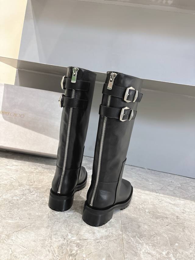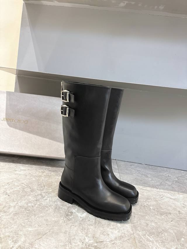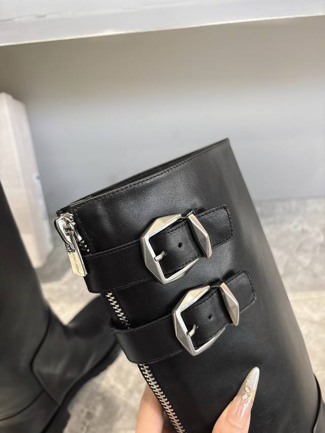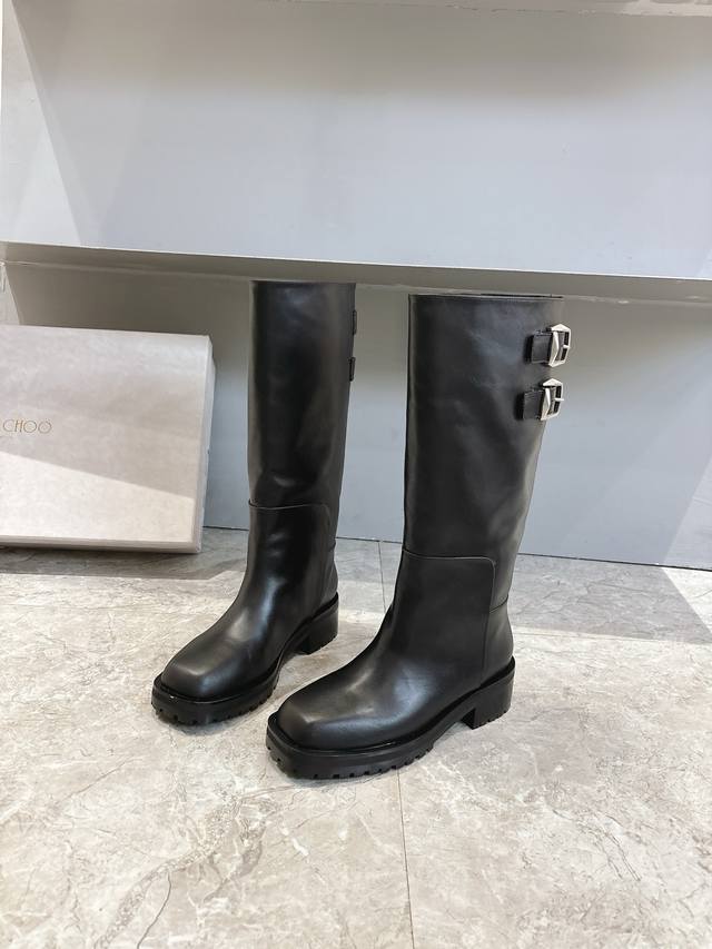 Jimmy Cho* 25Ss 黑色金属扣饰牛皮靴 采用优质牛皮打造,皮质细腻有光泽,质感高级;金属扣饰设计是点睛之笔,为整体增添了硬朗的机车风元素。橡胶大底,防滑耐磨,日常穿着舒适且适配多种场景。 长筒款可搭配黑色紧身皮裤,上衣选择黑色机车夹克,再搭配金属链条配饰,打造出帅气十足的机车风造型。短筒款搭配高腰直筒牛仔裤和白色衬衫,外搭一件卡其色风衣,既能展现复古韵味,又能满足通勤的干练需求。 鞋面:羊皮 内里:牛皮 大底:原版开模大底 Size:35-42 40.41.42定制不退换 短靴 长靴