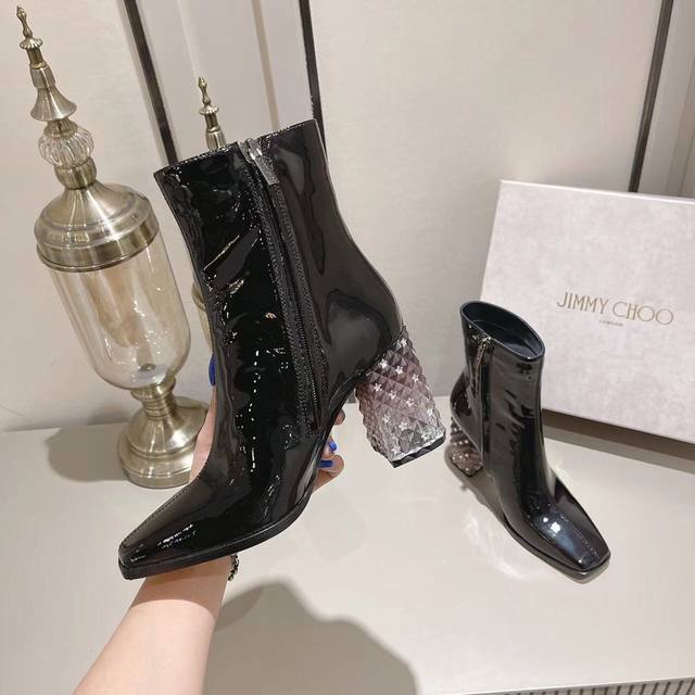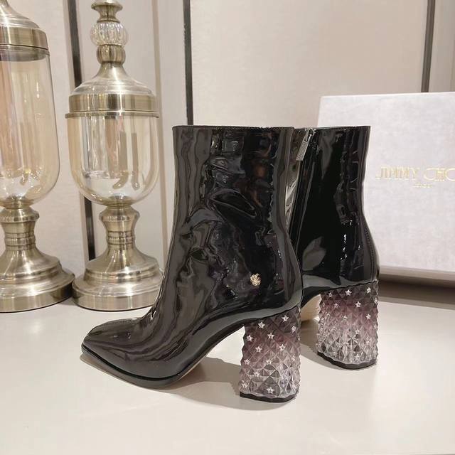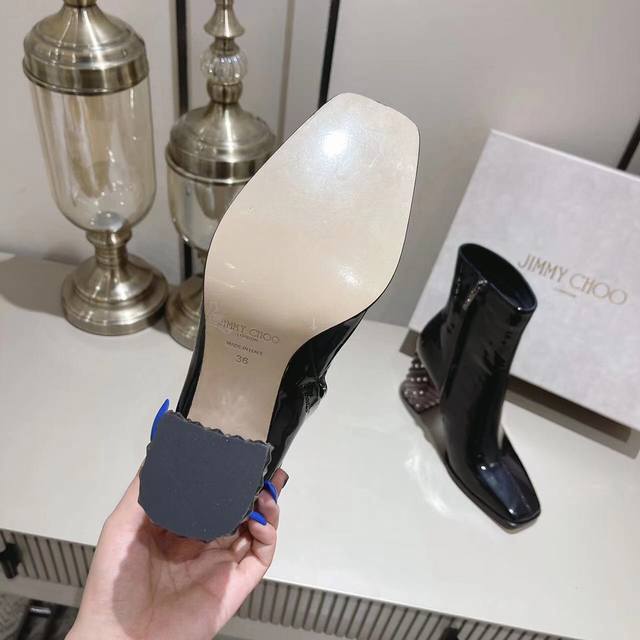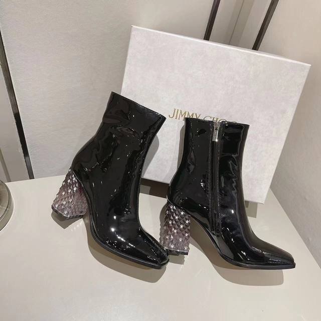 Jimmy Choo,核心与灵魂所在。完美的高跟鞋、极为优雅永恒时尚的及踝靴都深受众人喜爱,无论是偏爱都市潮流还是淑女装扮,均能找到与之搭配的;Jc Logo 饰黑色牛漆皮水钻粗跟踝靴Lbyrelle 踝靴采用柔软的黑色牛漆皮,饰有标志性 Jc 为日常穿搭增添优雅时尚气质。方鞋头和8:5厘米粗跟,是您都市外出的心仪之选。配以短款剪裁牛仔裤或飘逸连衣裙,更能凸显此款踝靴的时髦风尚。和原版一比一开模做成L面料:牛漆皮和黑色羊筋皮L内里:羊皮内里L宣形:方鞋头L跟形:粗跟L内里:羊皮内里L大底:意大利真皮大底,