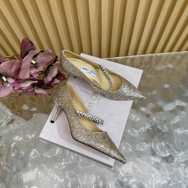 jimmy Choo 吉米周经典钻石链条 尖头高跟拖鞋