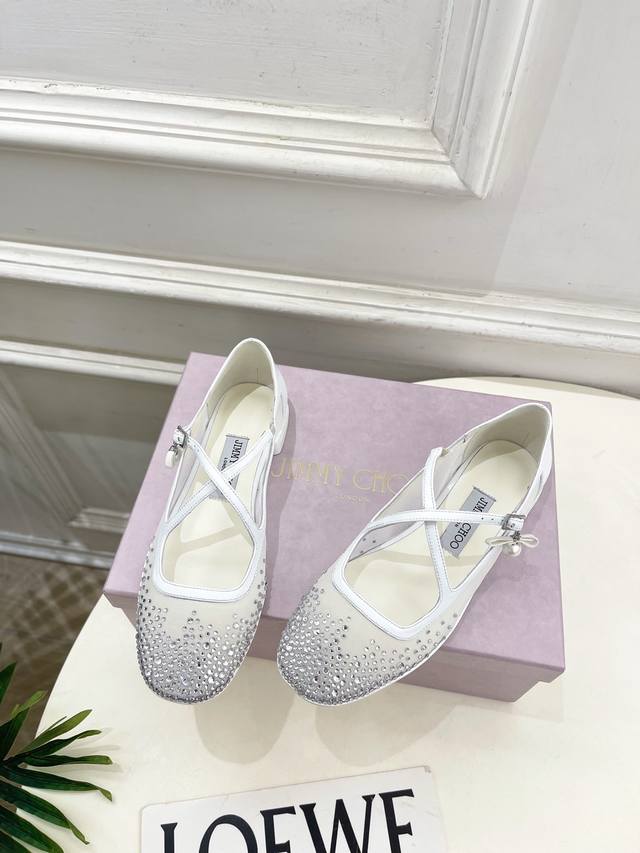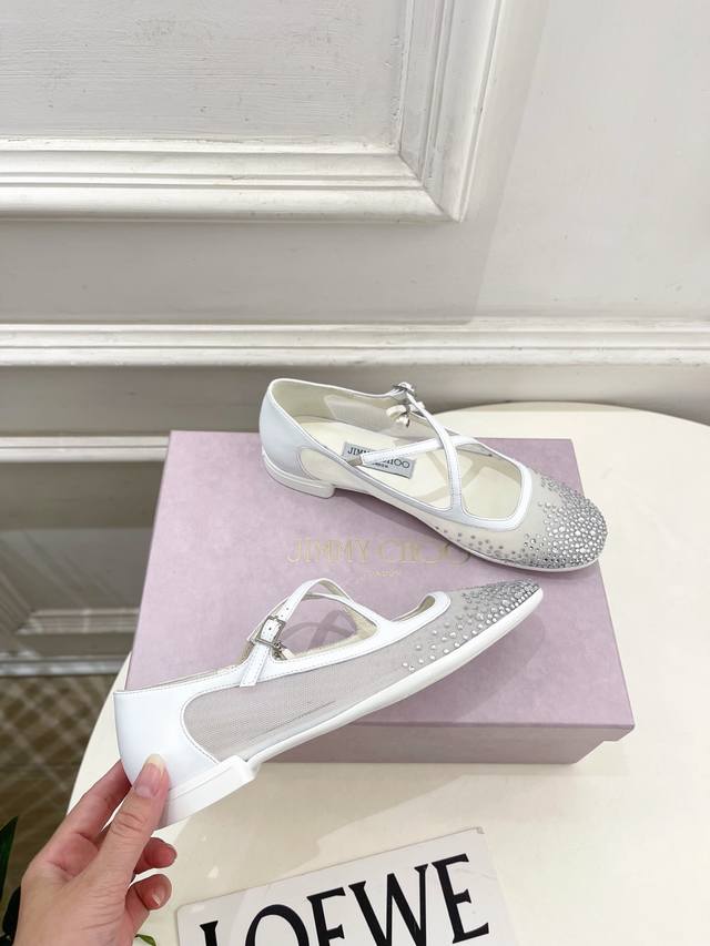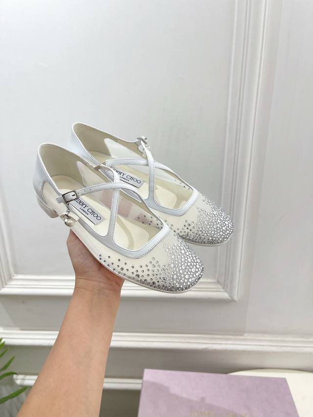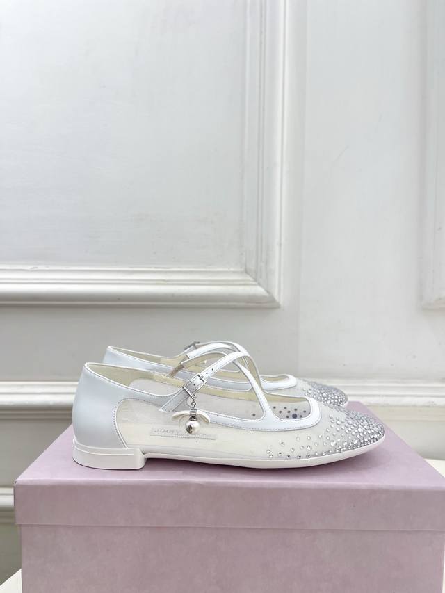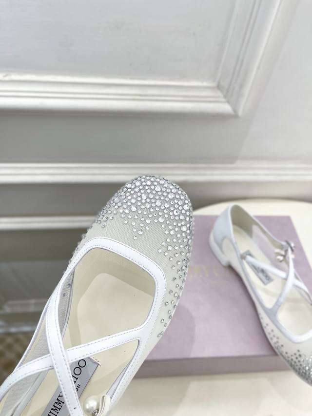 Jimmychoo吉米周 25Ss DDD 2025春夏新品 专柜最新 Eleri Ballerina 水钻交叉带芭蕾舞平底鞋 名媛气质款 上脚超级舒适的一款鞋,历久弥新,时髦魅力始于足下,悦享羡慕眼光,今年尖头高跟鞋比较香,又开始引领时尚趋势了,百搭耐看 DDD 鞋面:原版高定制网纱 DDD 内里:进口羊皮里 DDD 大底:原版定制开模大底 DDD 跟高:平底 DDD 尺码:35-39 34.40.41定做不退换 DDD 出厂价pp: DDD