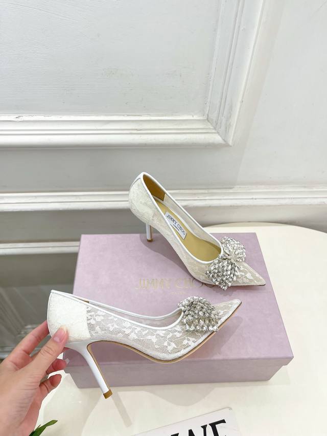 Jimmychoo吉米周 25Ss DDD 2025Ss新品 专柜最新 Jc水晶蝴蝶结尖头高跟鞋 DDD 名媛气质款 上脚超级舒适的一款鞋,历久弥新,时髦魅力始于足下,悦享羡慕眼光,今年尖头高跟鞋比较香,又开始引领时尚趋势了,百搭耐看 DDD 鞋面:原版高定制进口网眼布 DDD 内里:进口羊皮里 DDD 大底:原版意大利真皮大底 DDD 跟高:平底 6.5Cm 8.5Cm DDD 尺码:35~39 34.40.41定做不退换 DDD 出厂价pp: DDD